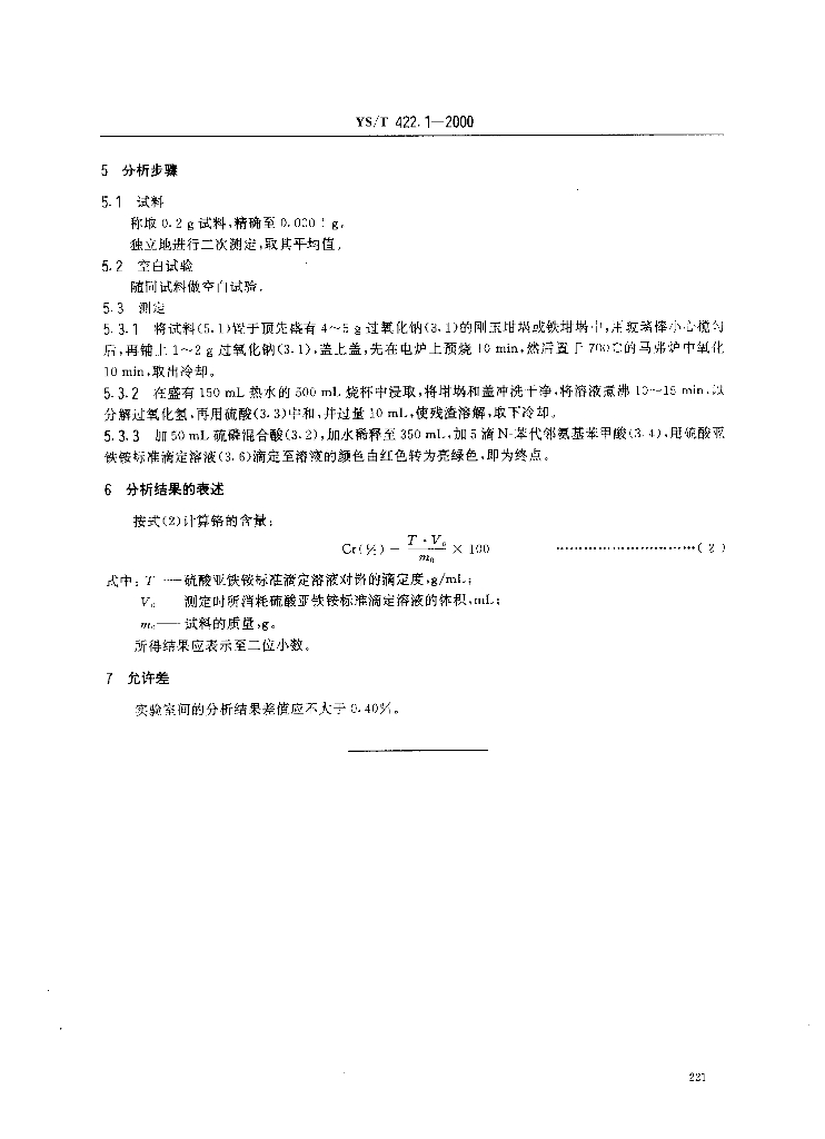 YS/T 422.1-2000 碳化铬化学分析方法铬量的测定