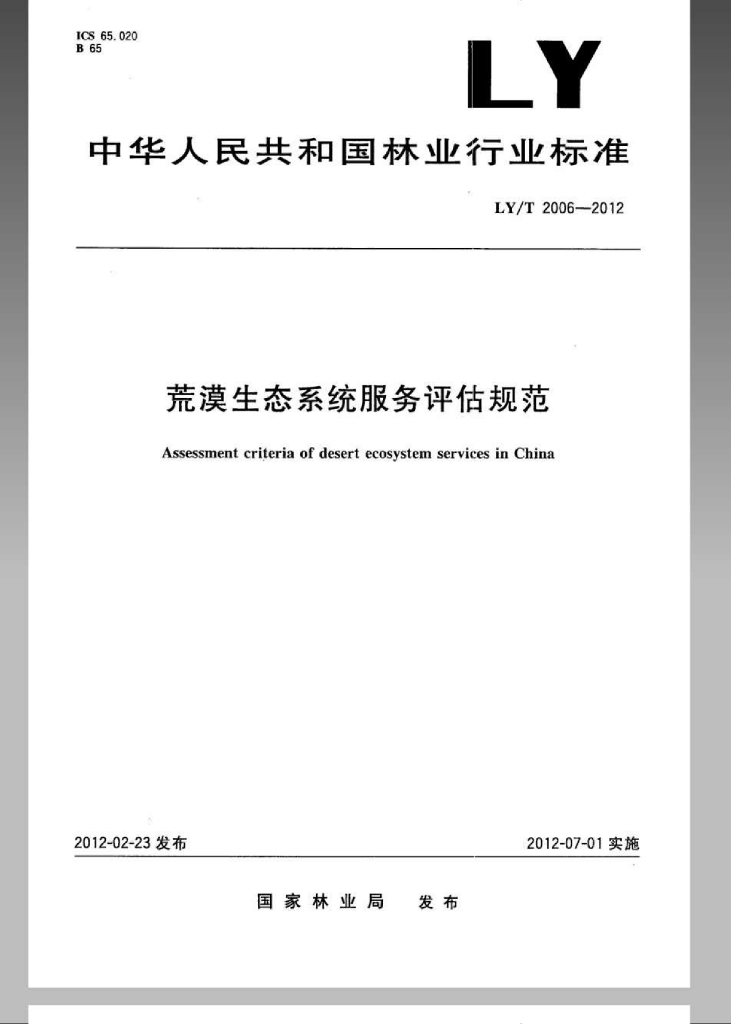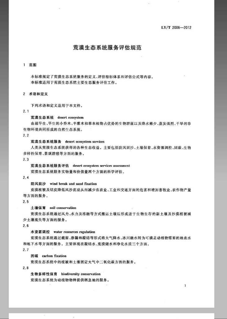 LY/T 2006-2012 荒漠生态系统服务评估规范
