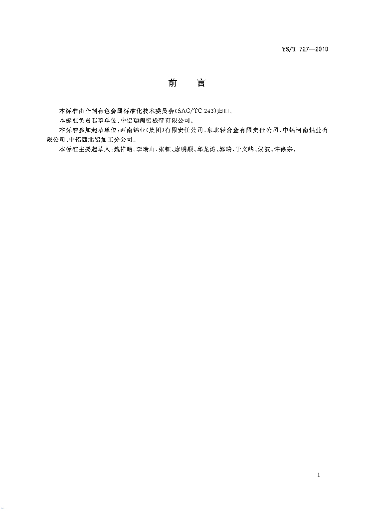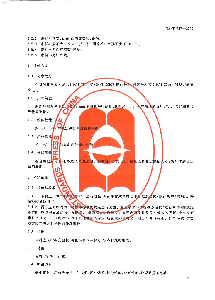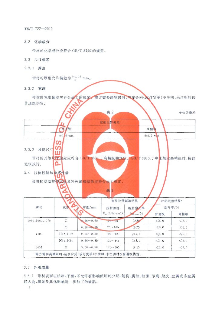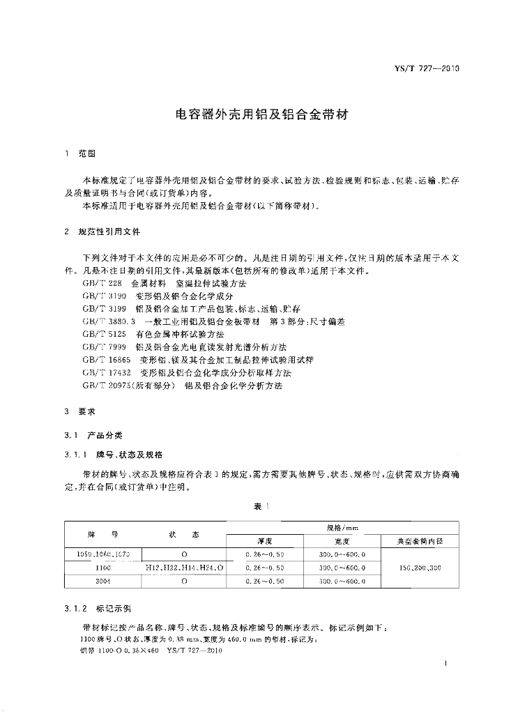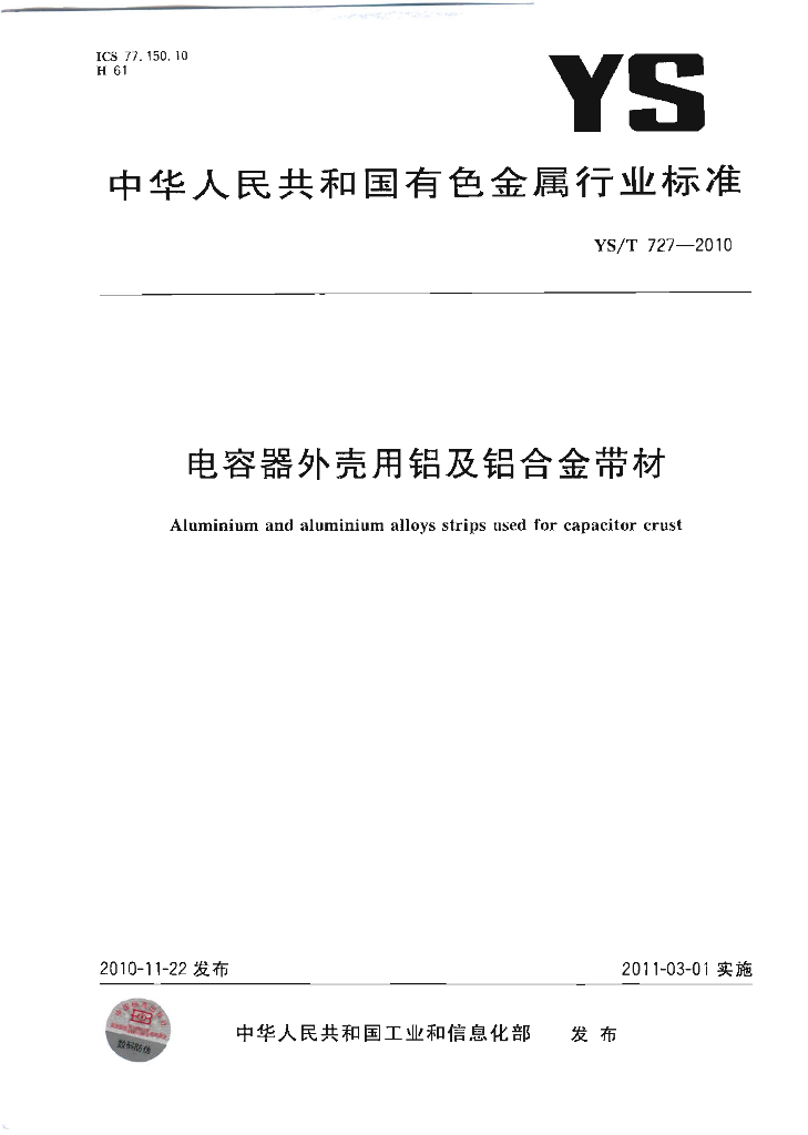 YS/T 727-2010 电容器外壳用铝及铝合金带材