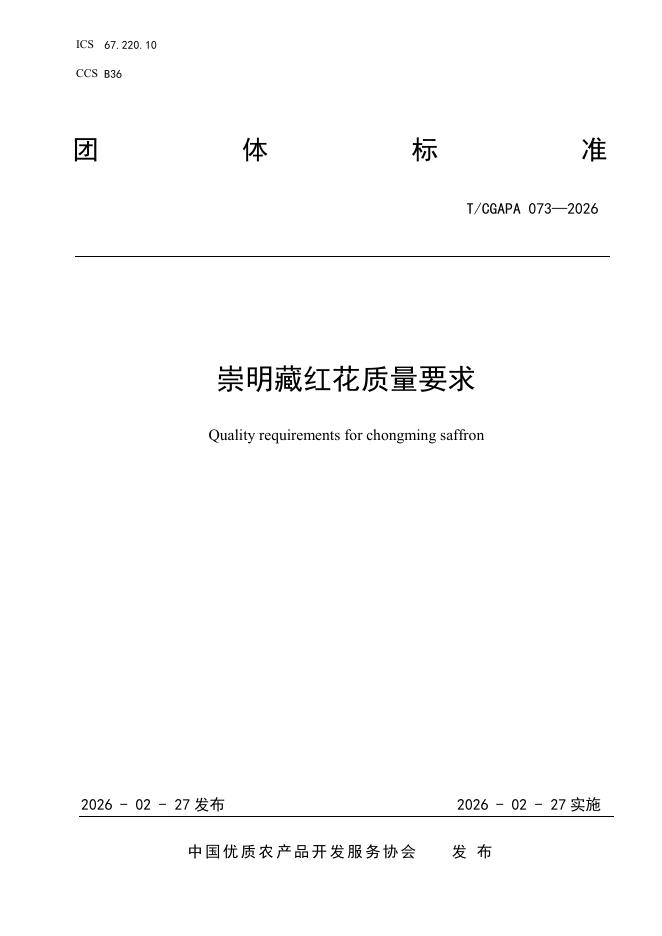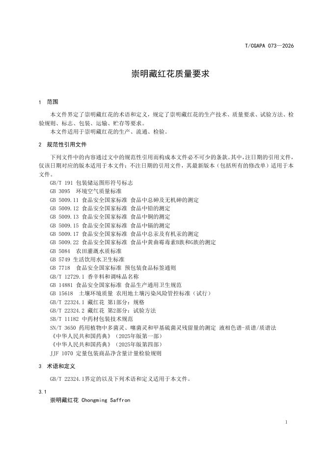 T/CGAPA 073-2026 崇明藏红花质量要求
