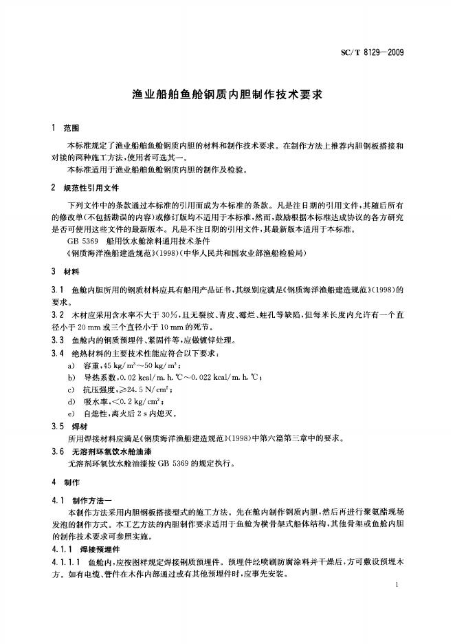 SC/T 8129-2009 渔业船舶鱼舱钢质内胆制作技术要求