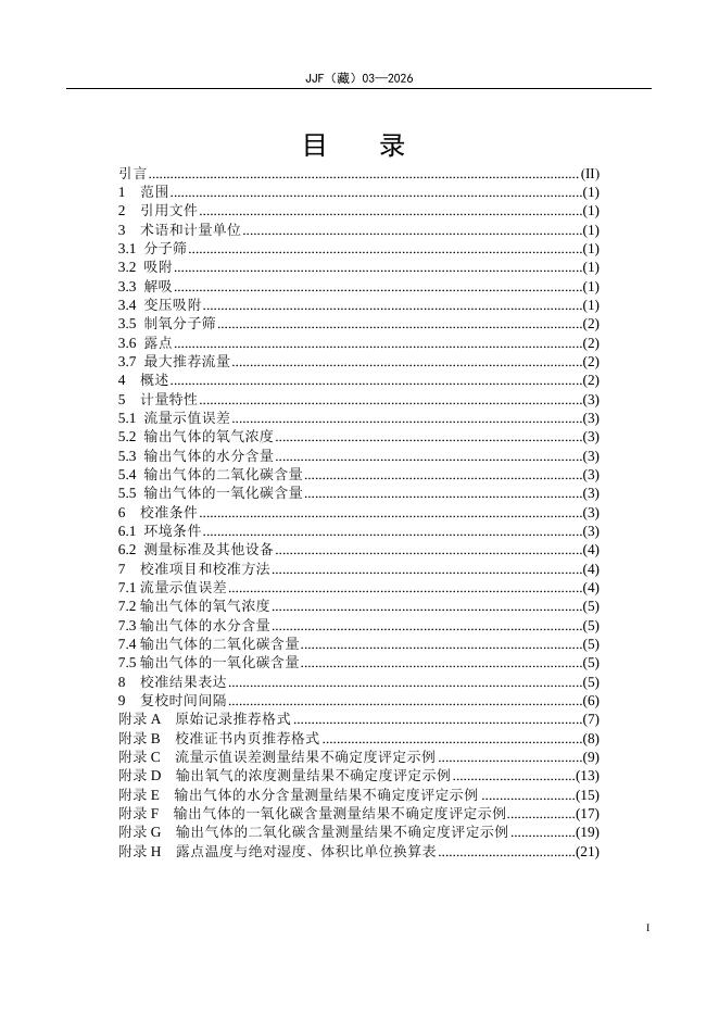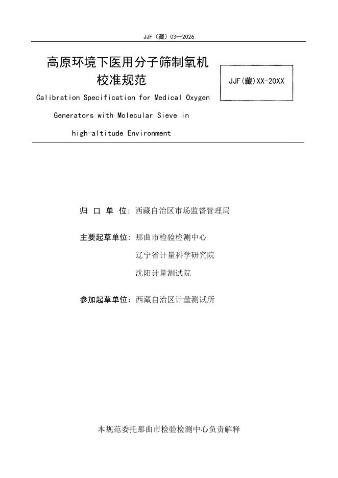 JJF(藏)03-2026 高原环境下医用分子筛制氧机校准规范
