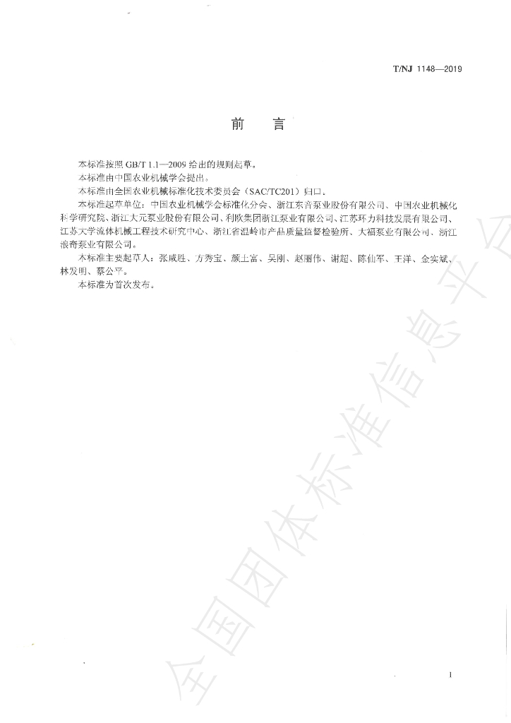 中国农业机械学会标准化分会、浙江东音泵业股份有限公司、中国农业机械化科学研究院、浙江大元泵业股份有限公司、利欧集团浙江泵业有限公司、江苏环力科技发展有限公司、江苏大学流体机械工程技术研究中心、浙江省温岭市产品质量监督检验所、大福泵业有限公司、浙江浪奇泵业有限公司