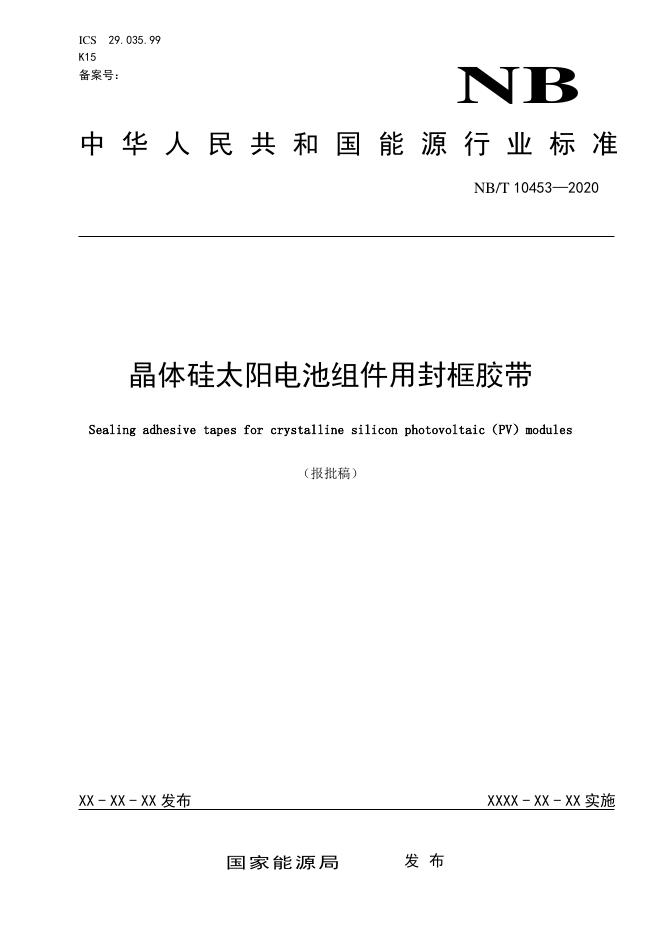 NB/T 10453-2020 晶体硅太阳电池组件用封框胶带