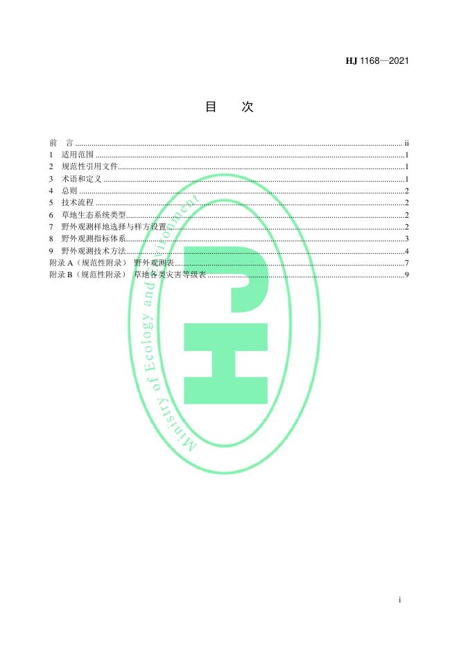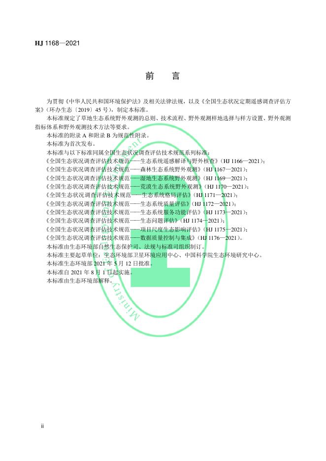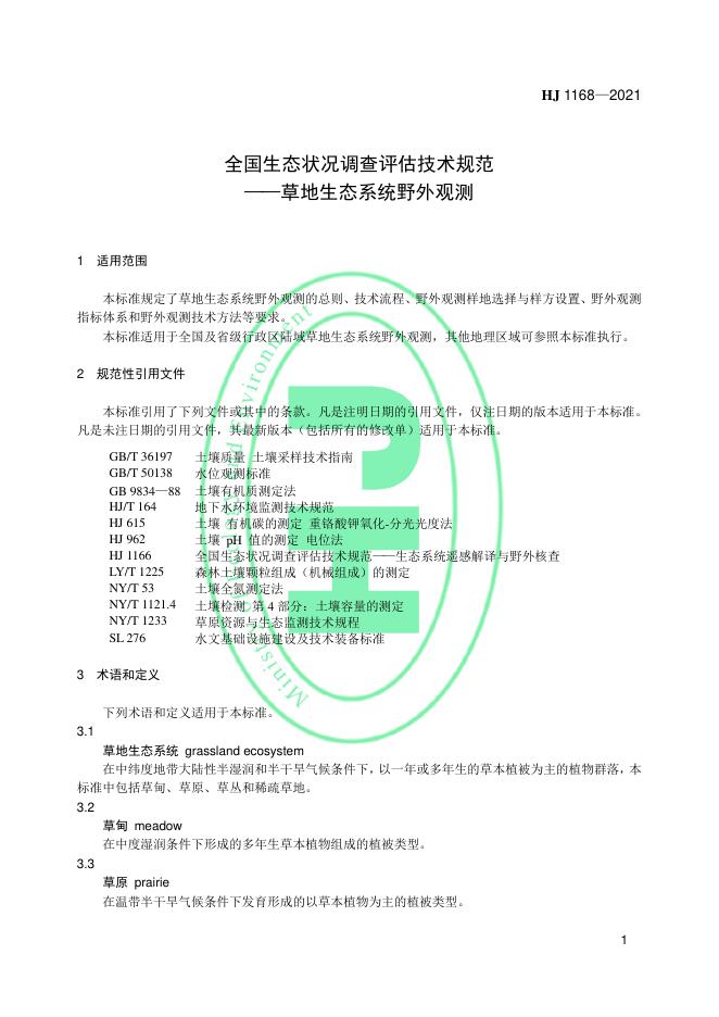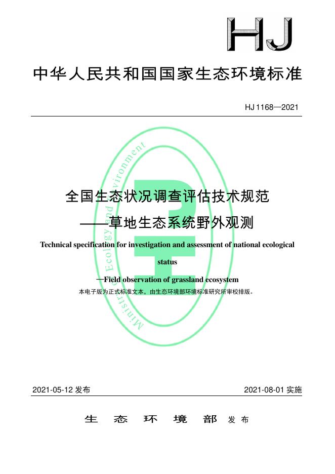 HJ 1168-2021 全国生态状况调查评估技术规范——草地生态系统野外观测