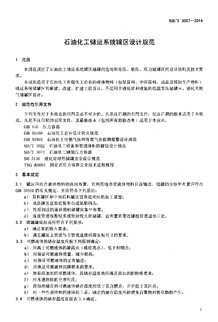 SH/T 3007-2014 石油化工储运系统罐区设计规范