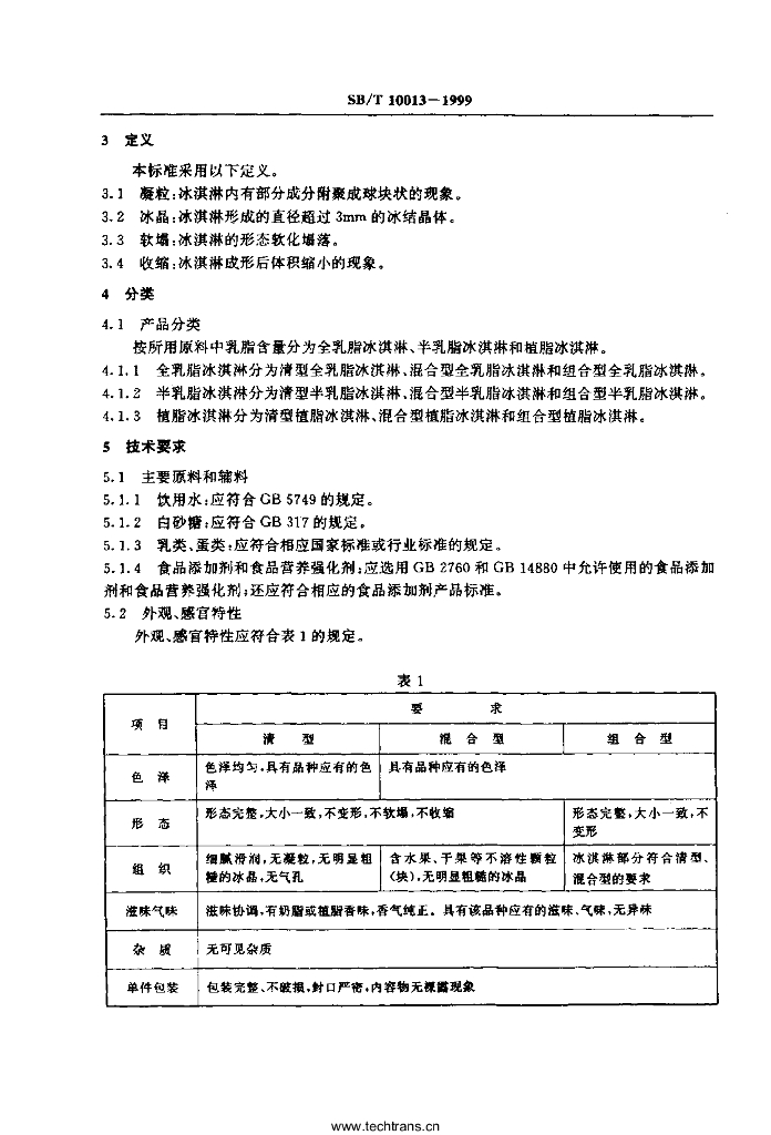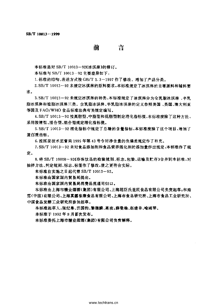 SB/T 10013-1999 冰淇淋