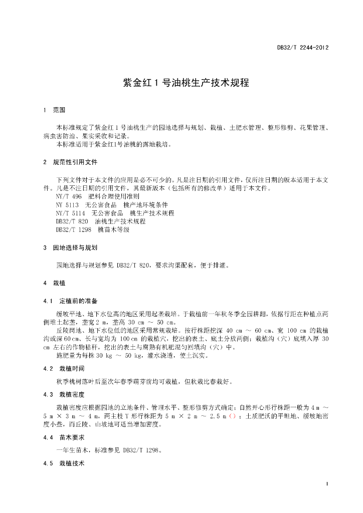 DB32/T 2244-2012 紫金红1号油桃生产技术规程