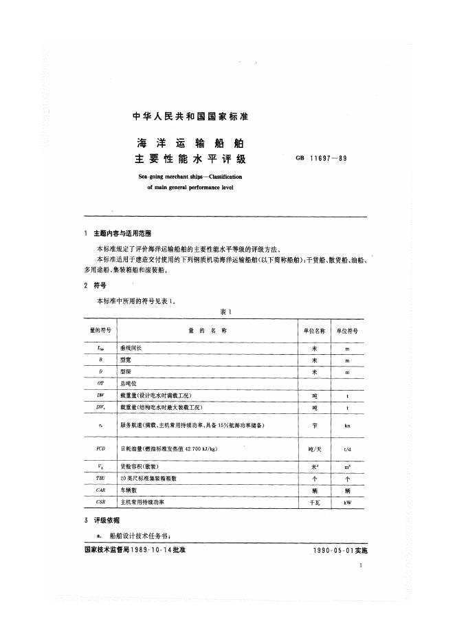 CB/T 3886-1999 海洋运输船舶主要性能水平评级