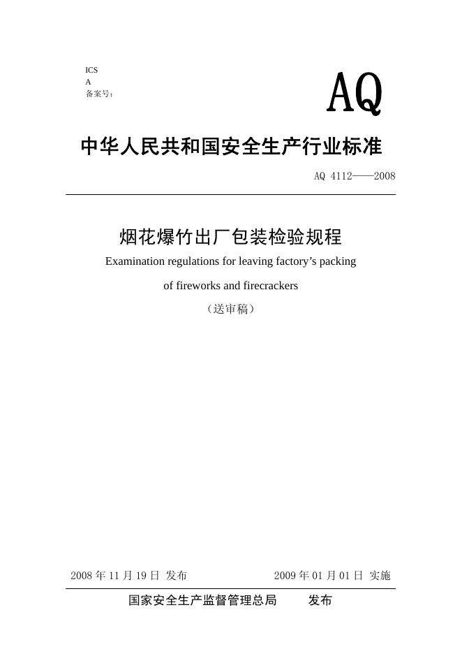 AQ 4112-2008 烟花爆竹出厂包装检验规程