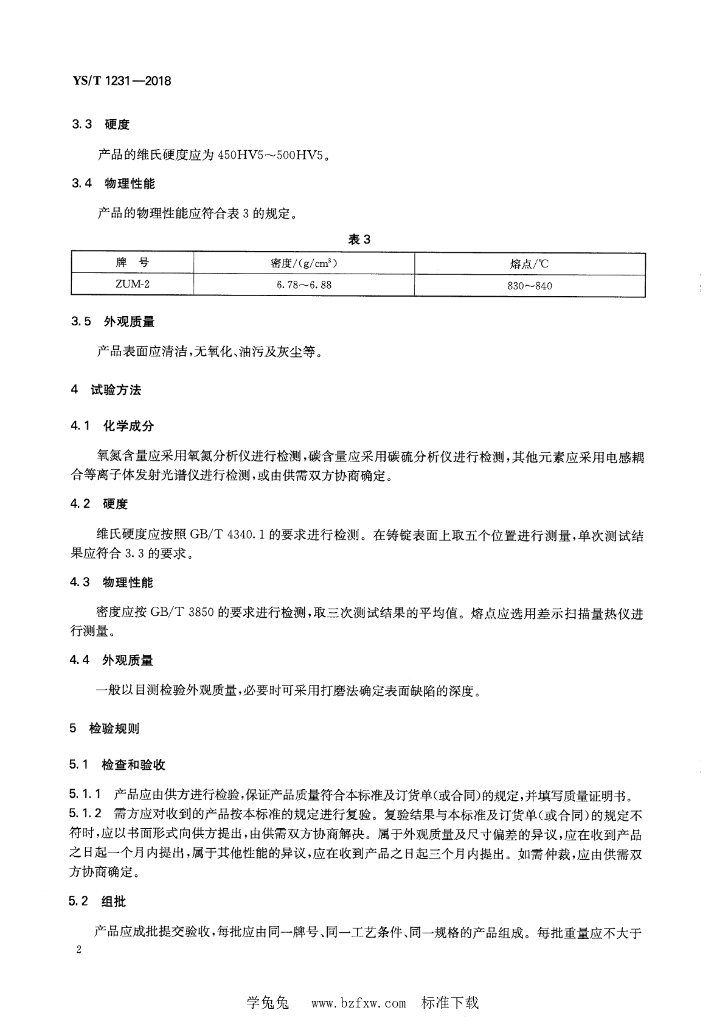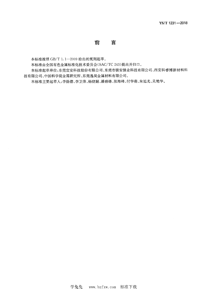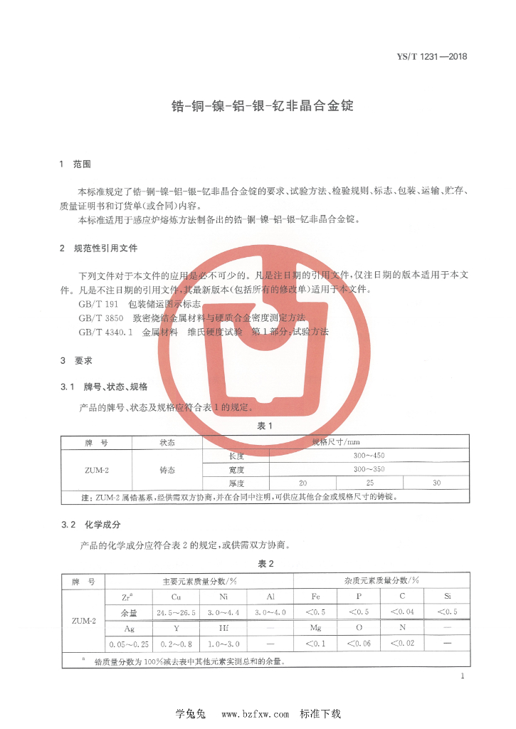 YS/T 1231-2018 锆-铜-镍-铝-银-钇非晶合金锭