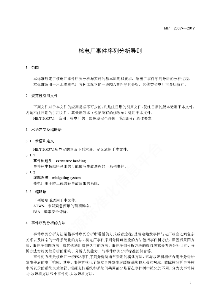 NB/T 20559-2019 核电厂事件序列分析导则