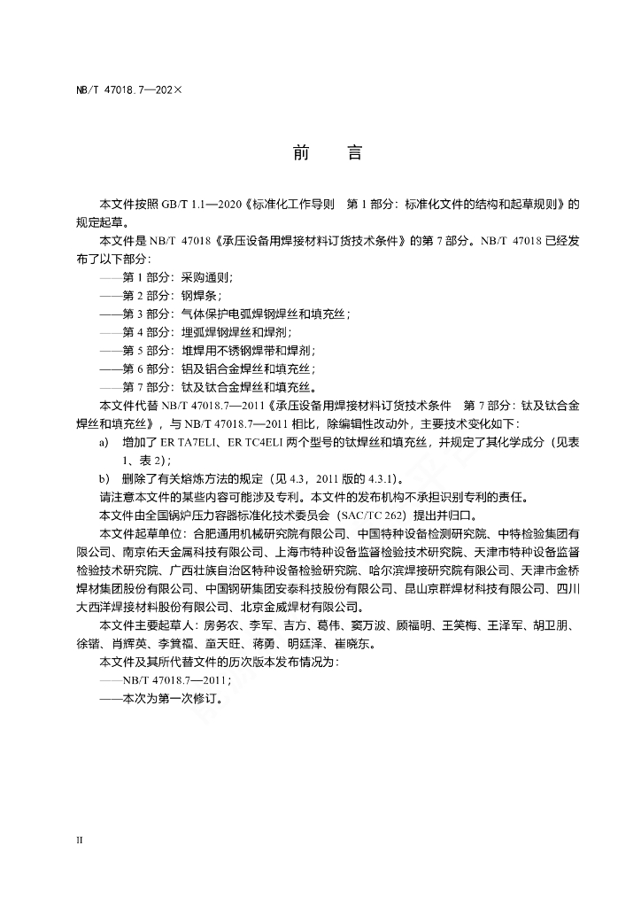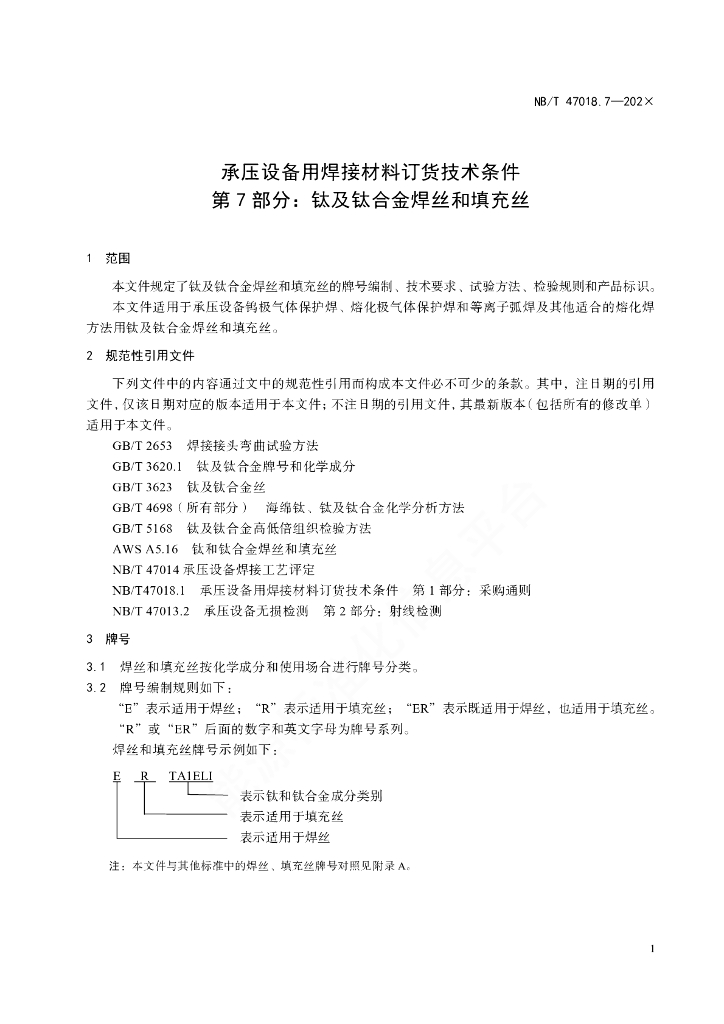 NB/T 47018.7-2022 承压设备用焊接材料订货技术条件 第7部分:钛及钛合金焊丝和填充丝