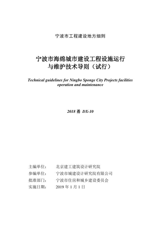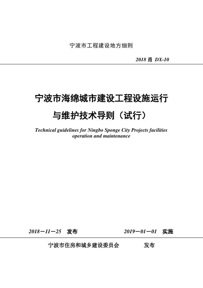 2018甬DX-10 宁波市海绵城市建设工程设施运行与维护技术导则试行