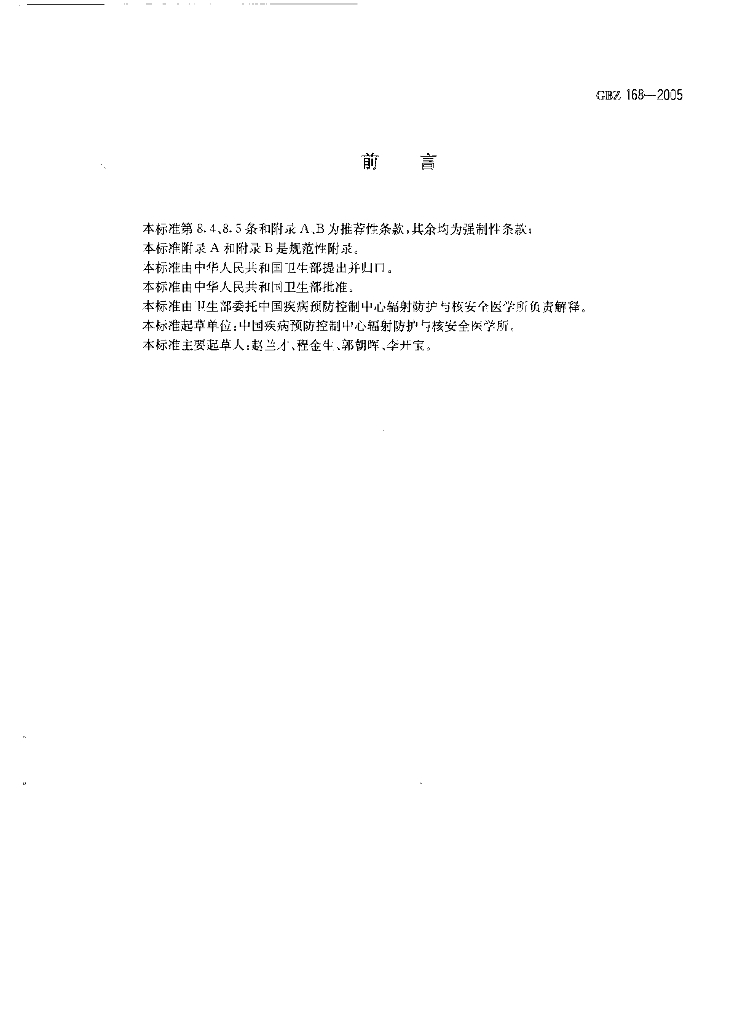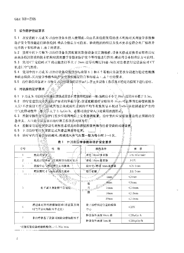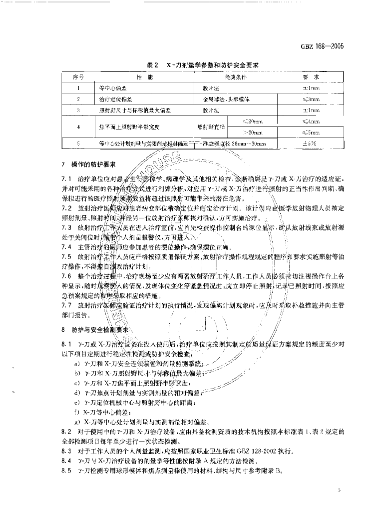 GBZ 168-2005 X、γ射线头部立体定向外科治疗放射卫生防护标准
