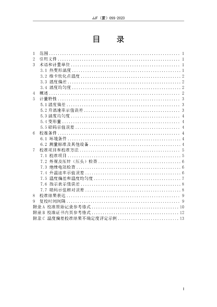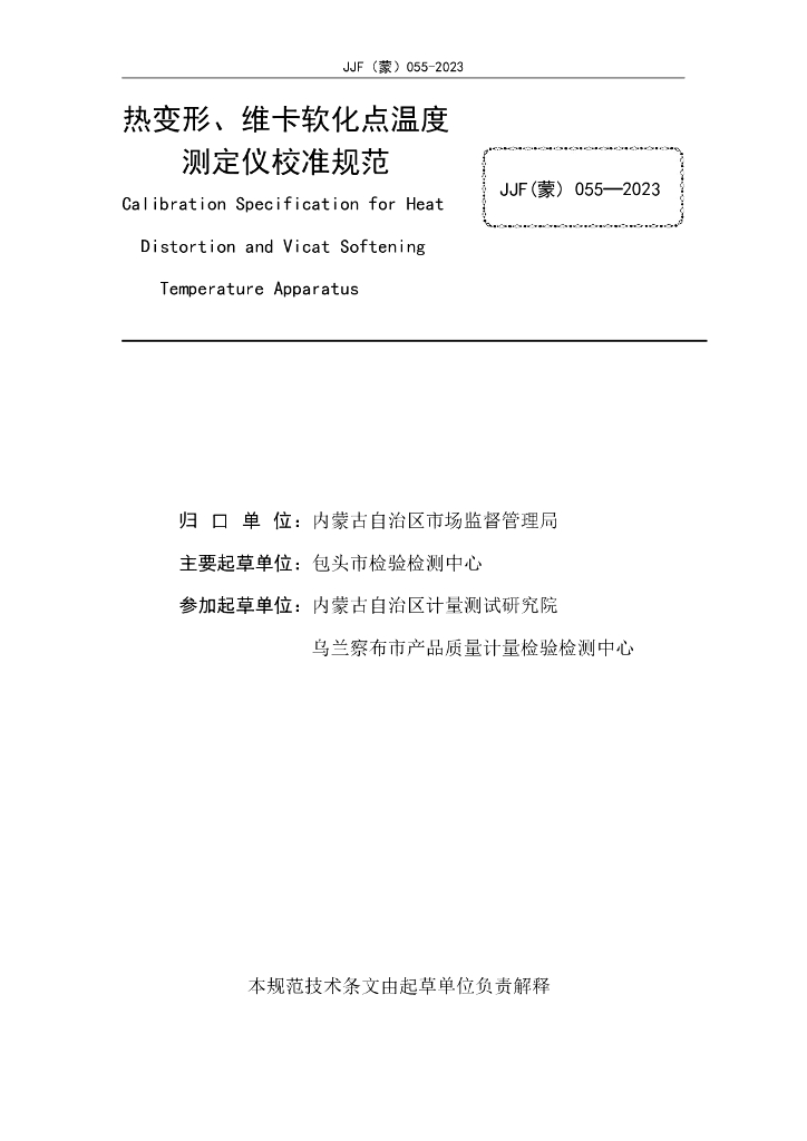 JJF(蒙)055-2023 热变形、维卡软化点温度测定仪校准规范