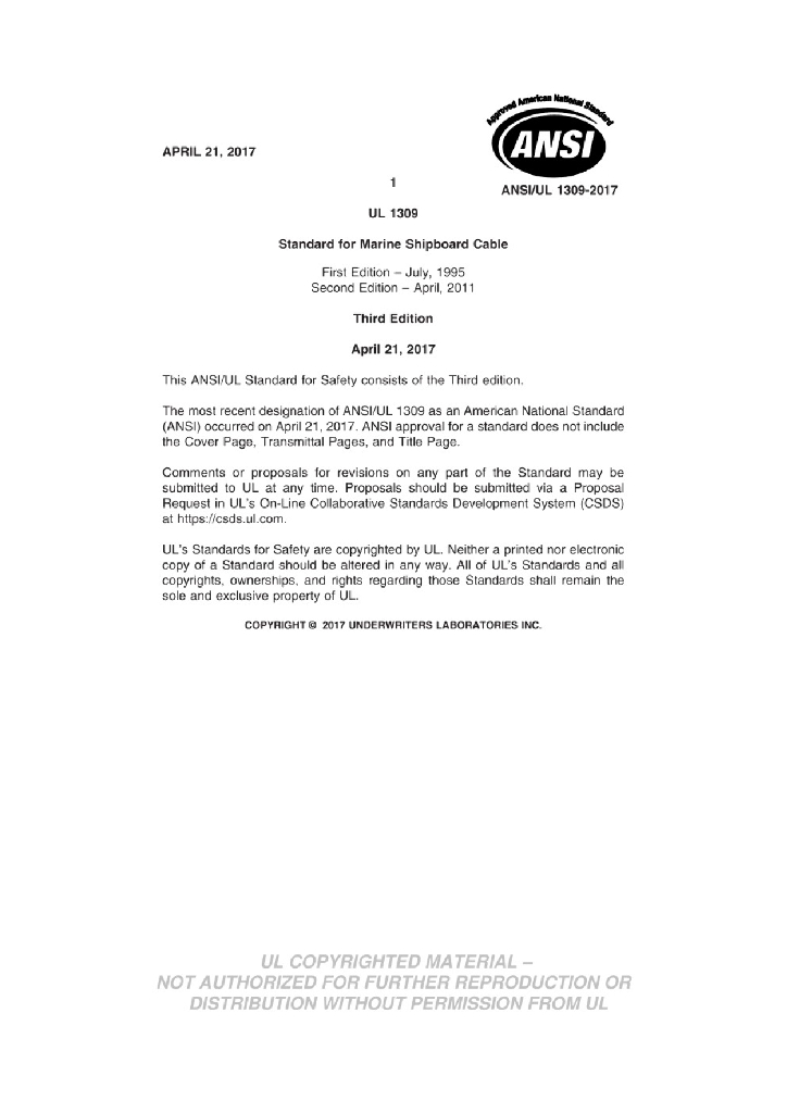 UL 1309-2017 海船电缆安全标准