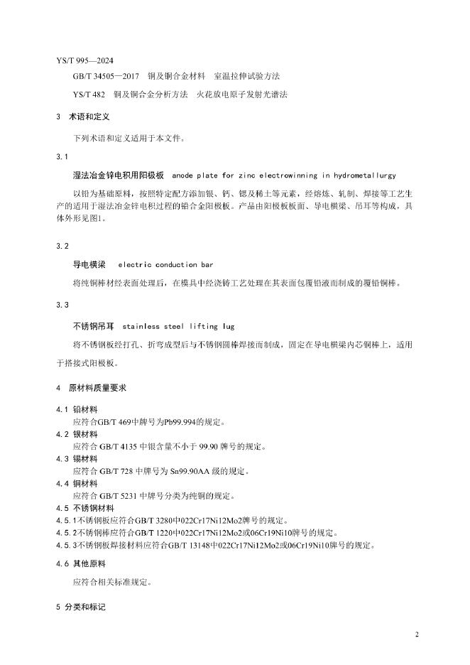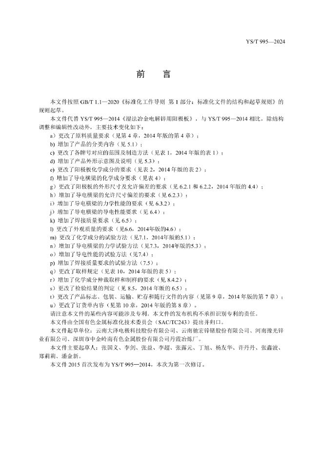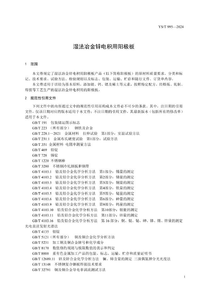 YS/T 995-2024 湿法冶金锌电积用阳极板