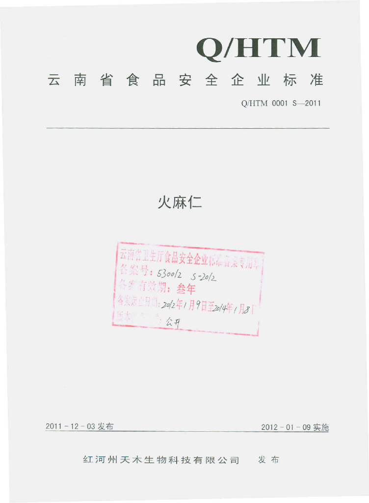 Q/HTM 0001S-2011 火麻仁