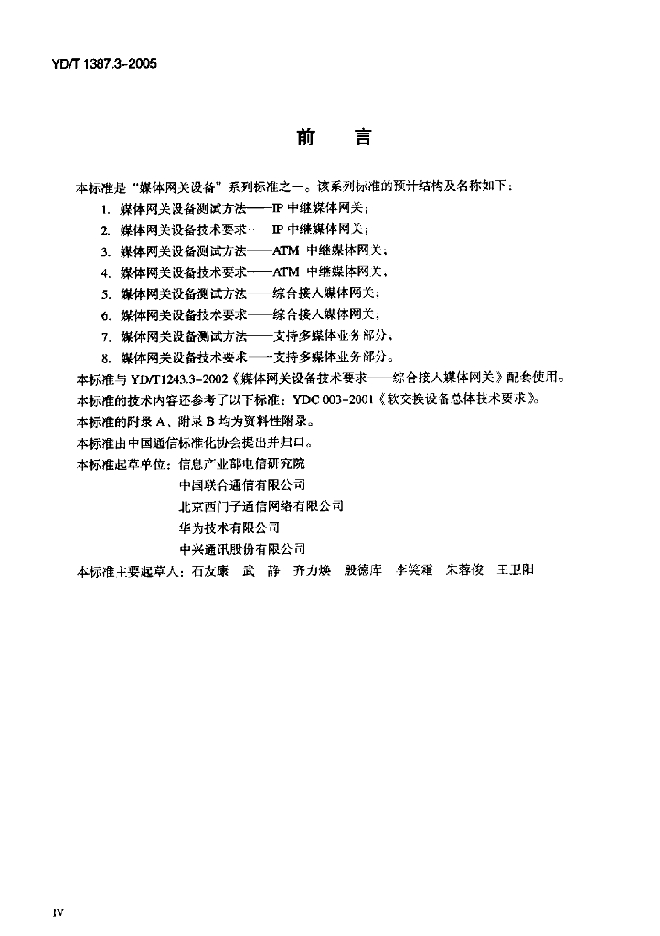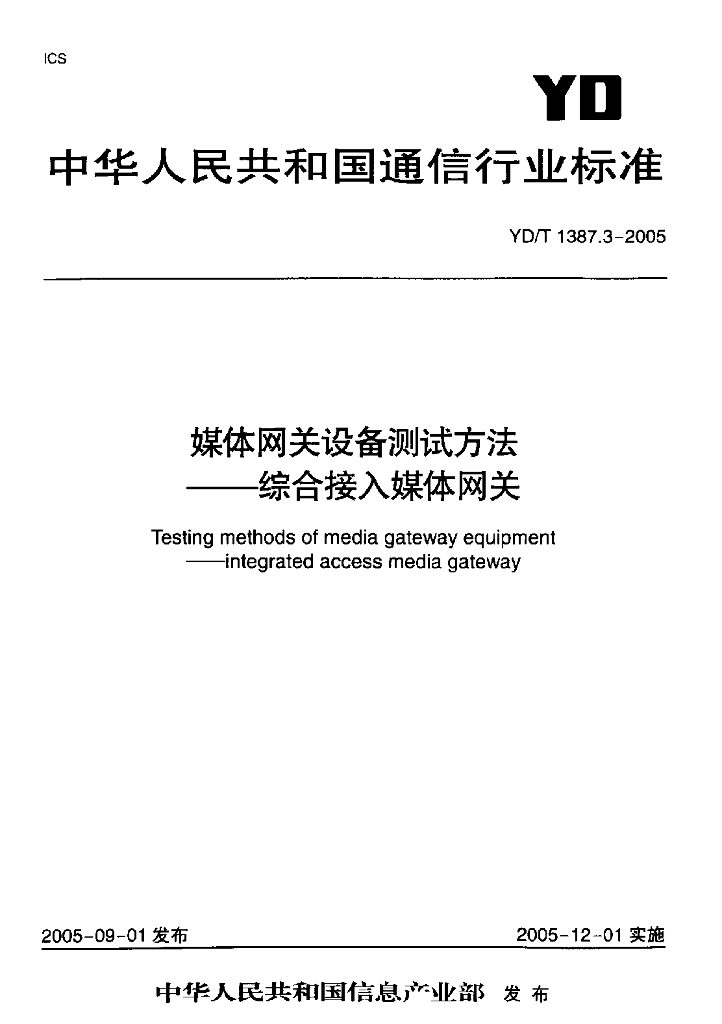 YD/T 1387.3-2005 媒体网关设备测试方法综合接入媒体网关