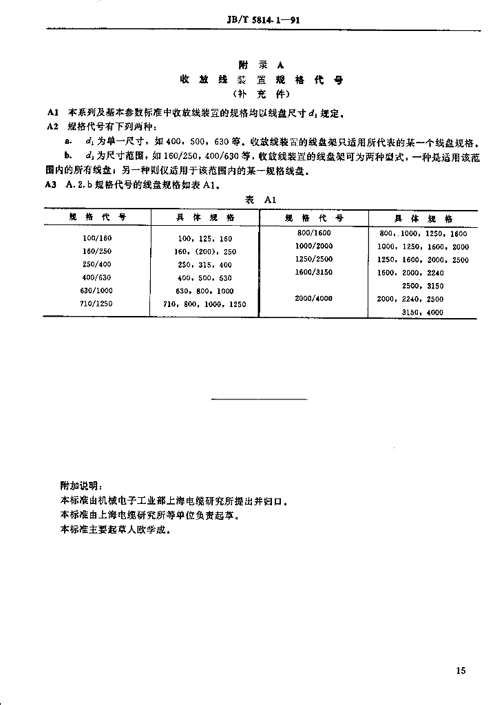 JB 5814.1-1991 电线电缆专用设备基本参数 第1部分 一般规定