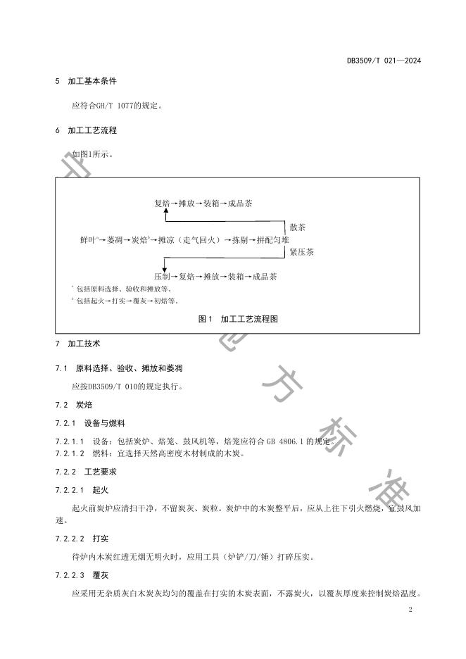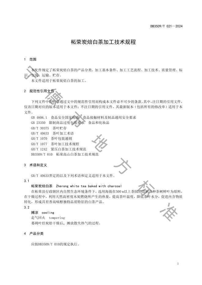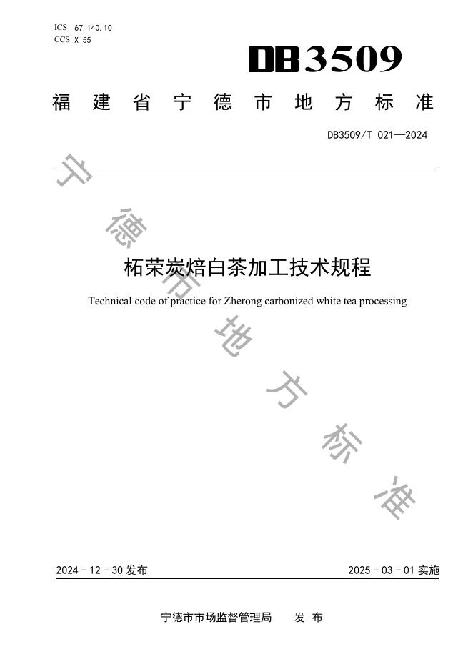 DB3509/T 021-2024 柘荣炭焙白茶加工技术规程