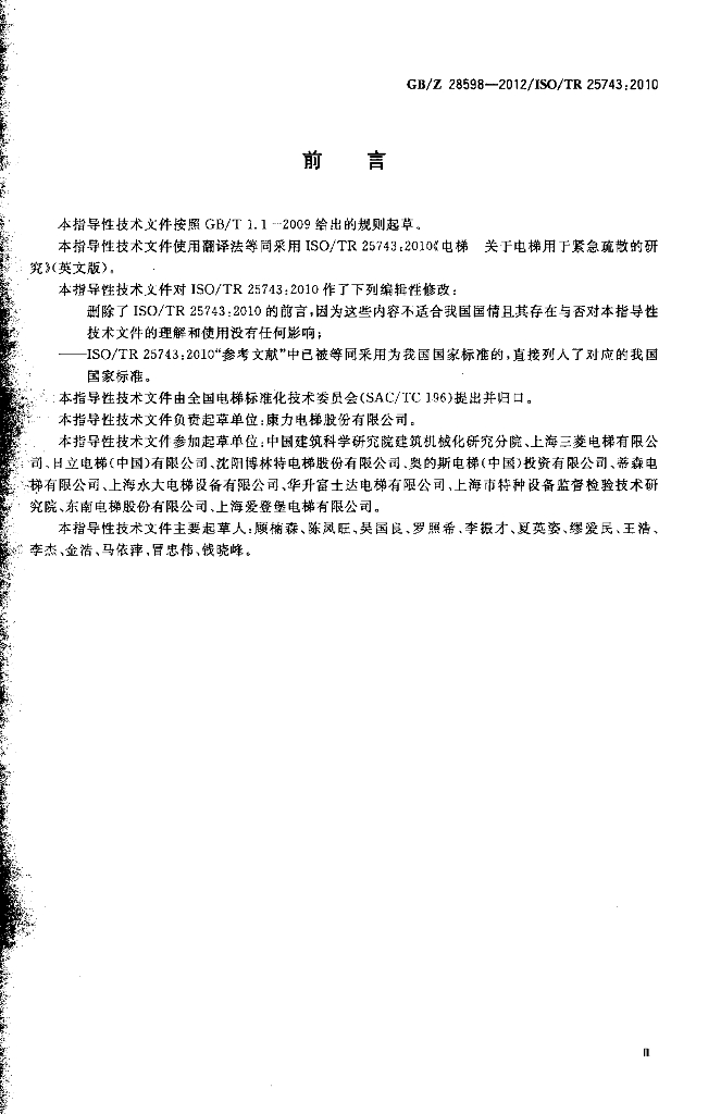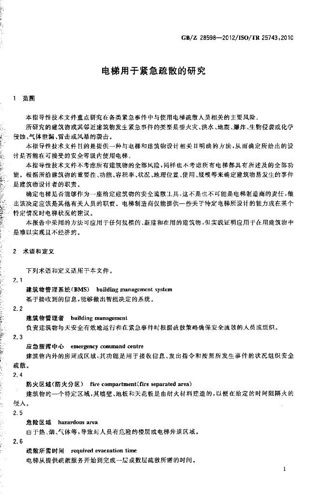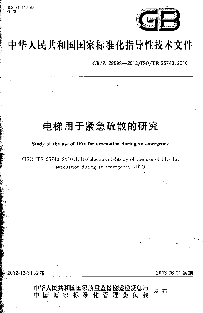 GBZ 28598-2012 电梯用于紧急疏散的研究