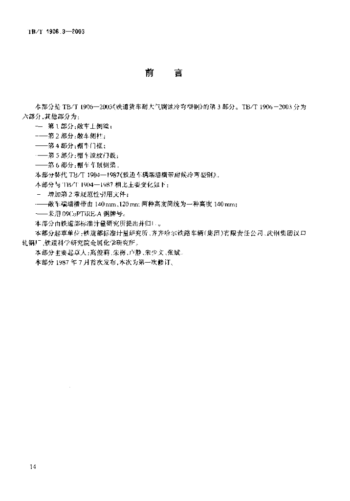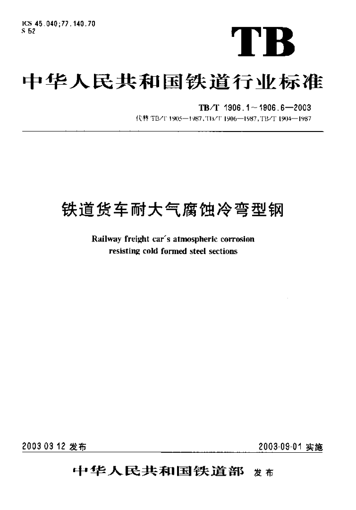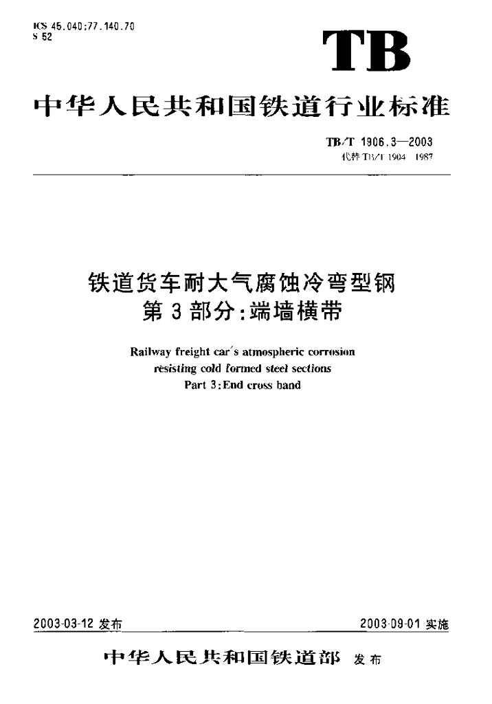 TB/T 1906.3-2003 铁道货车耐大气腐蚀冷弯型钢 第3部分 端墙横带