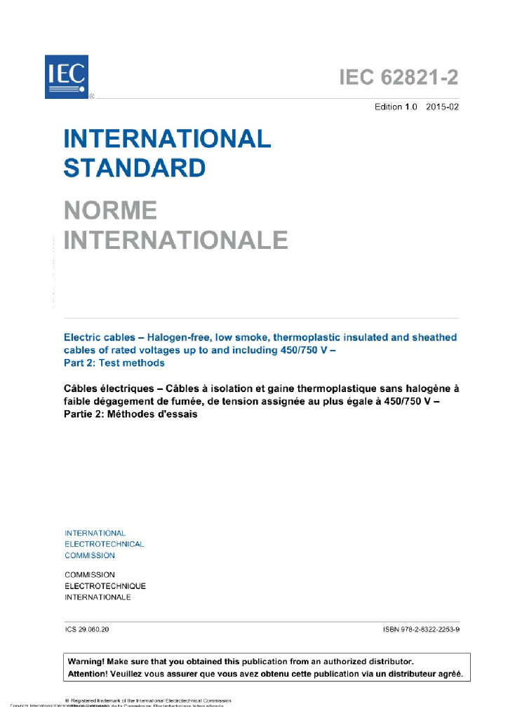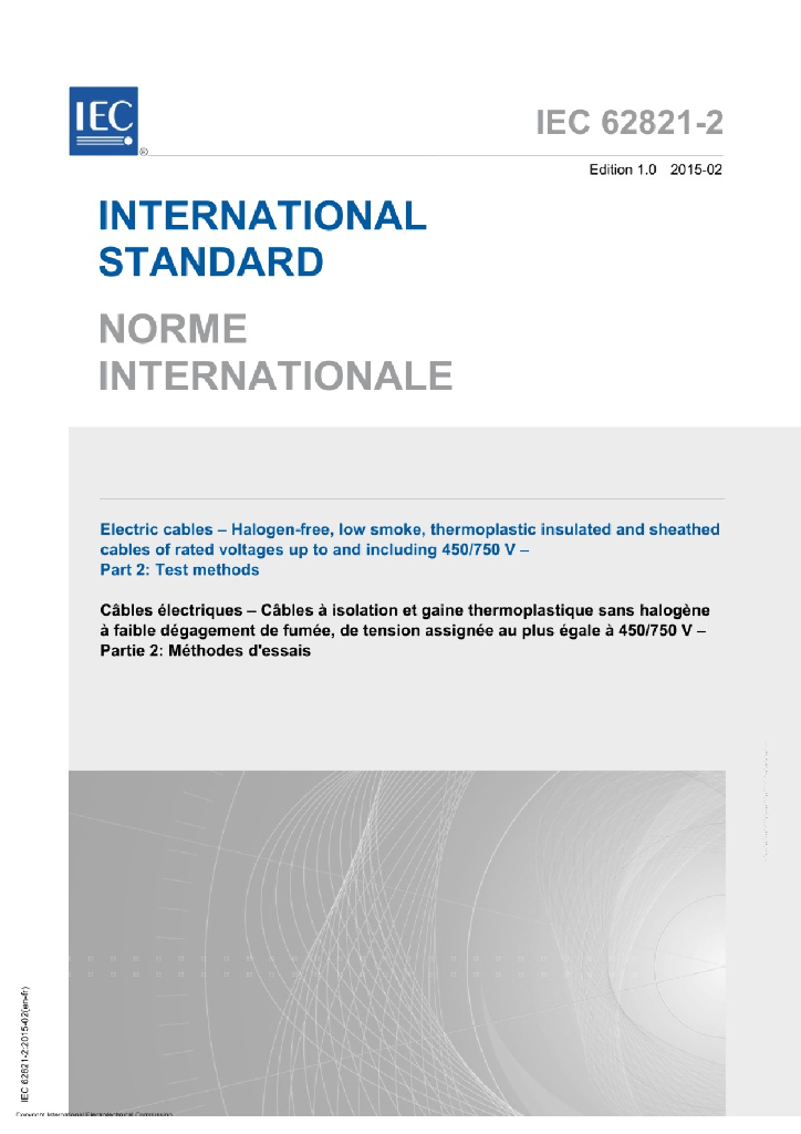 IEC 62821-2:2015 电缆-额定电压450/750V及以下无卤、低烟、热塑性绝缘和护套电缆-第2部分 试验方法