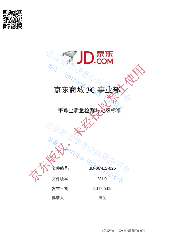 Q/DXJD3CES 025-2017 二手珠宝分级检验标准