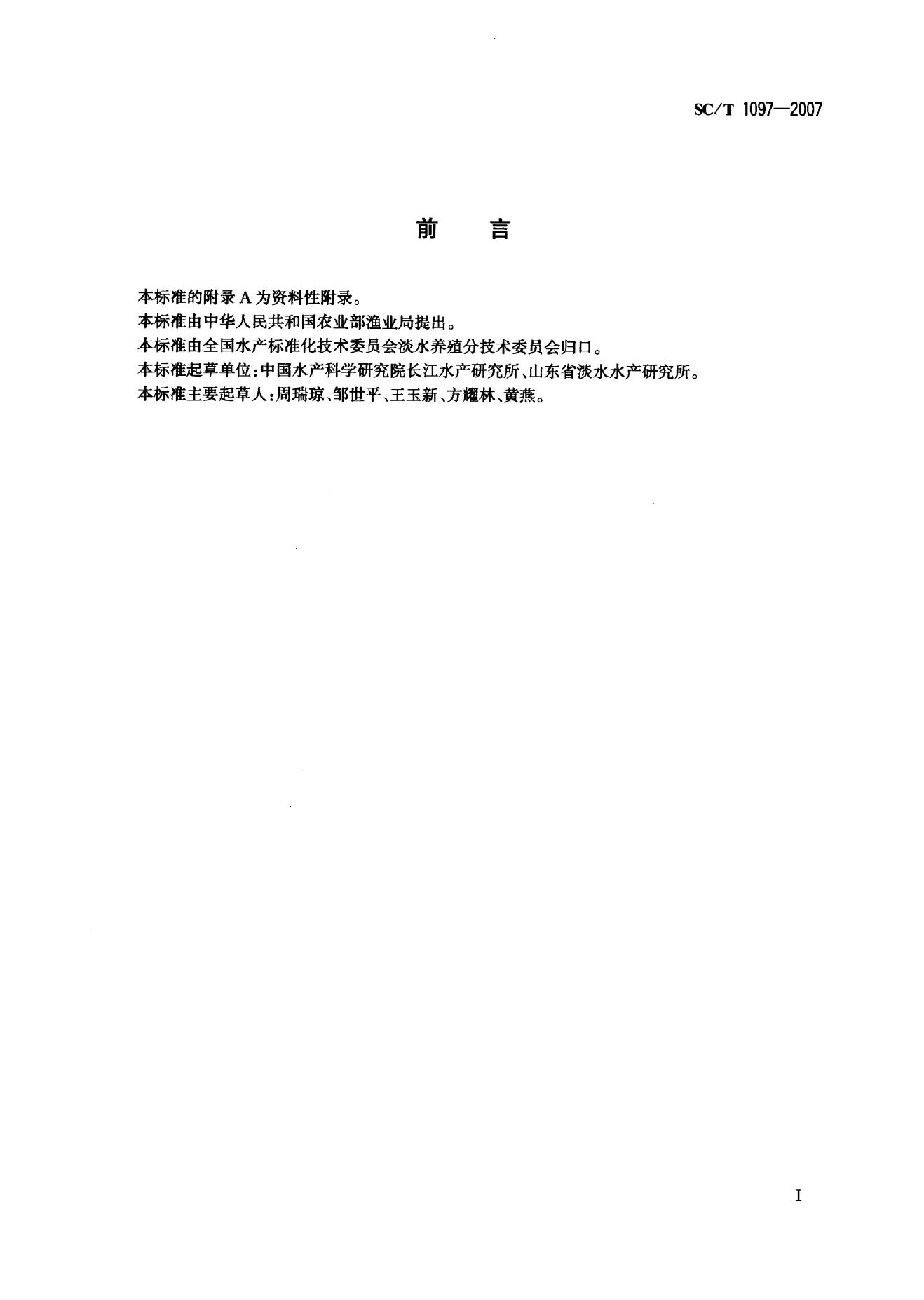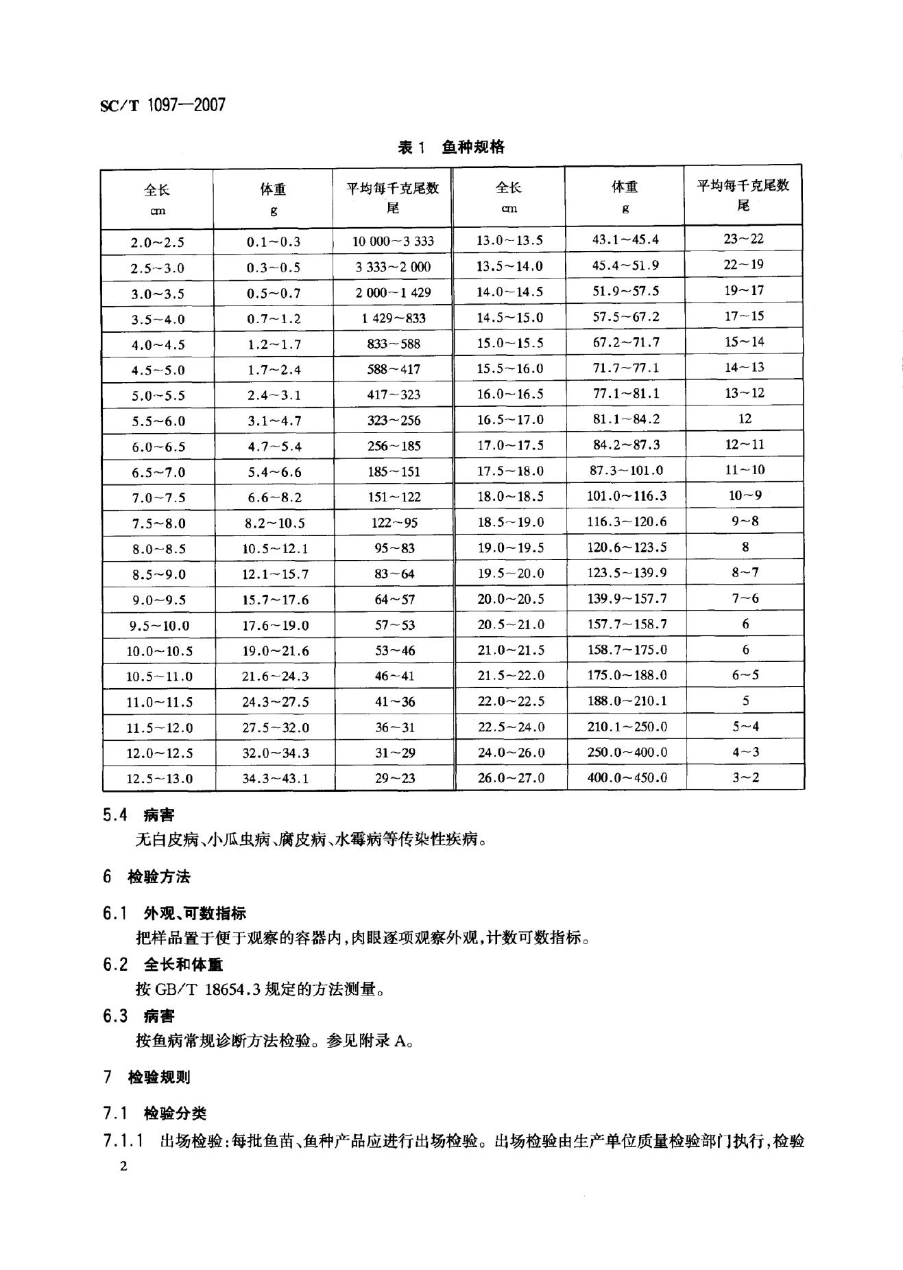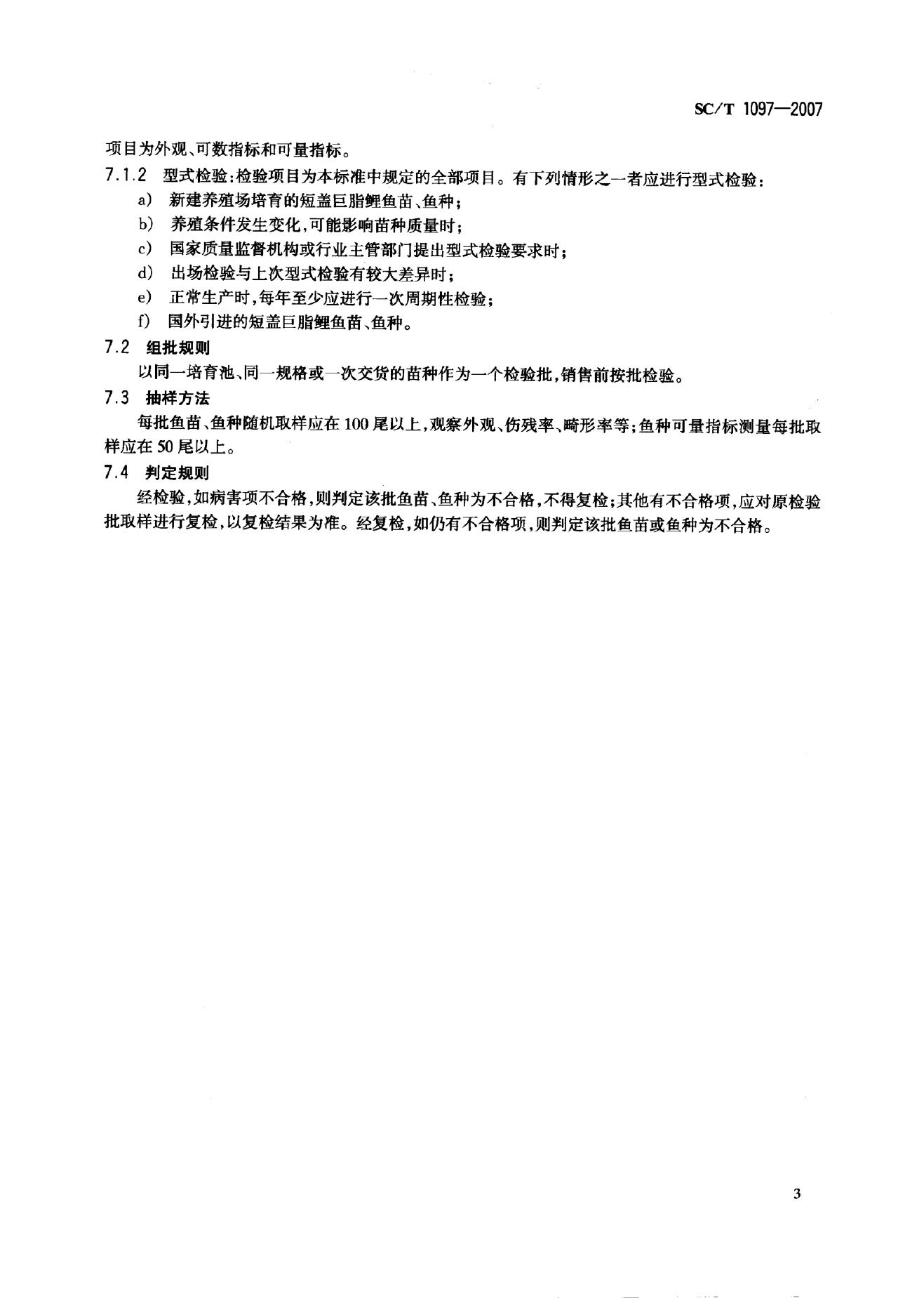 SC/T 1097-2007 短盖巨脂鲤 鱼苗、鱼种