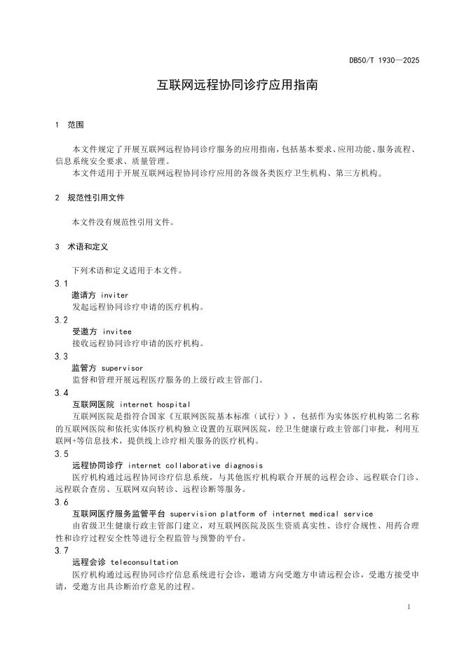 DB50/T 1930-2025 互联网远程协同诊疗应用指南