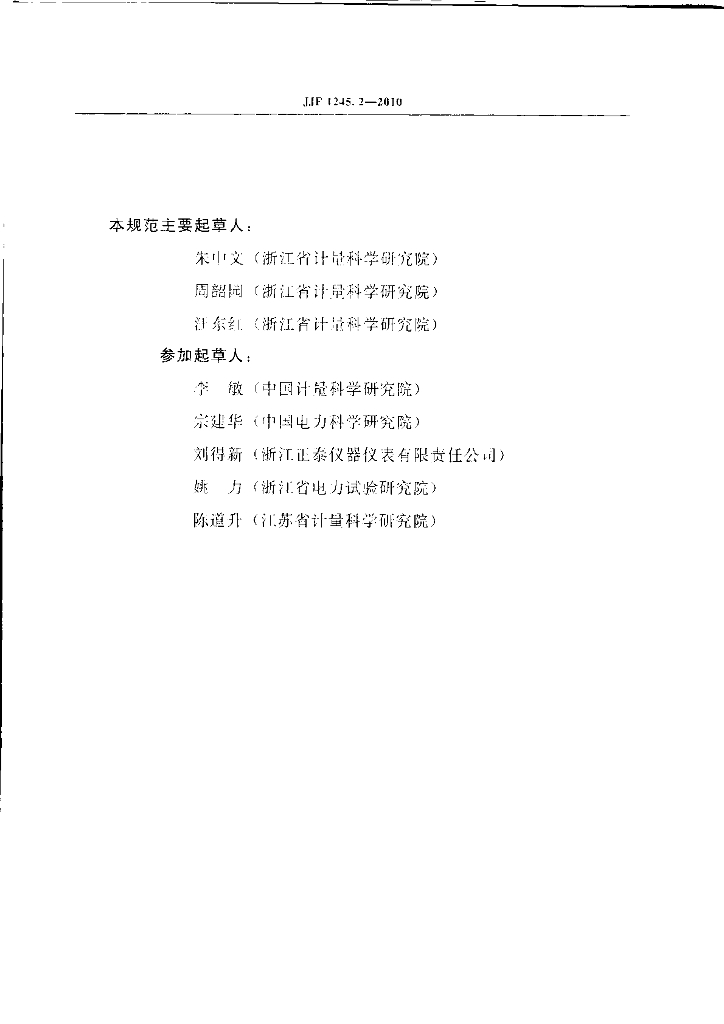 朱中文(浙江省计量科学研究院)、周韶园(浙江省计量科学研究院)、汪东红(浙江省计量科学研究院)、李敏(中国计量科学研究院)、宗建华(中国电力科学研究院)、刘得新(浙江正泰仪器仪表有限责任公司)、姚力(浙江省电力试验研究院)、陈道升(江苏省计量科学研究院)