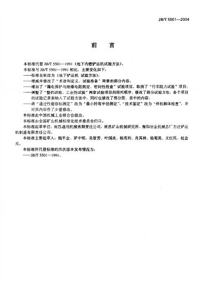 JB/T 5501-1991 地下内燃铲运机 试验方法