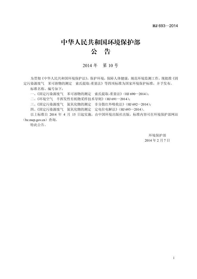 HJ 693-2014 固定污染源废气 氮氧化物的测定 定电位电解法
