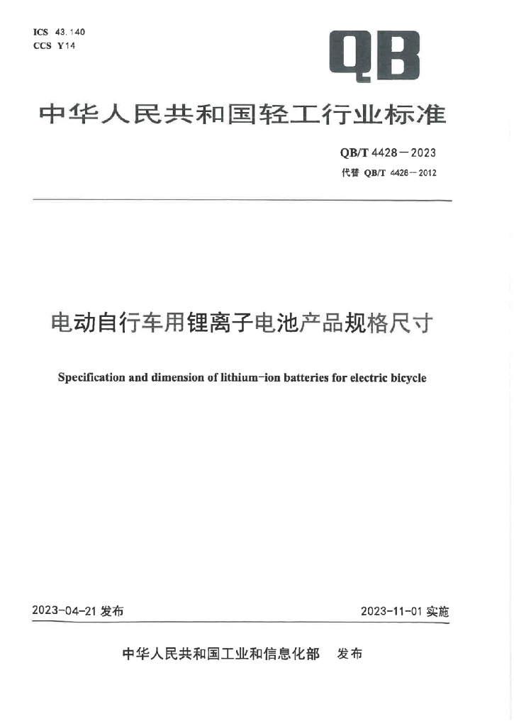 - 代替标准:QB/T 4428-2012