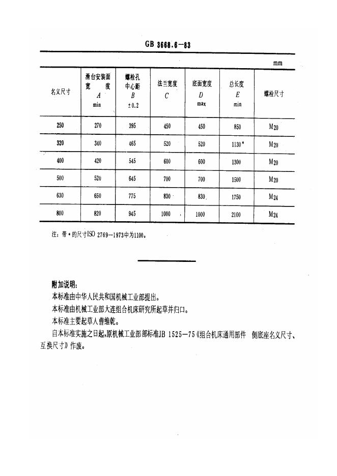 GB/T 3668.6-1983 组合机床通用部件 滑台侧底座尺寸