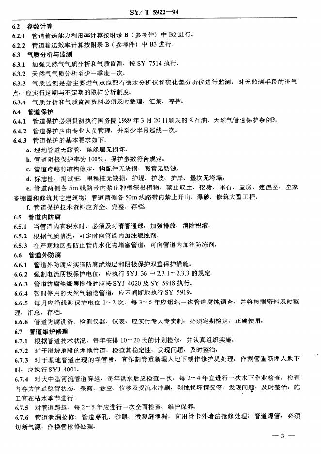 SY/T 5922-1994 天然气输送管道运行管理规范