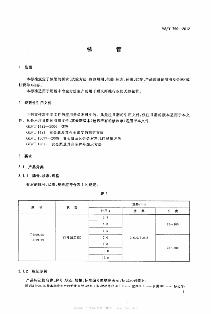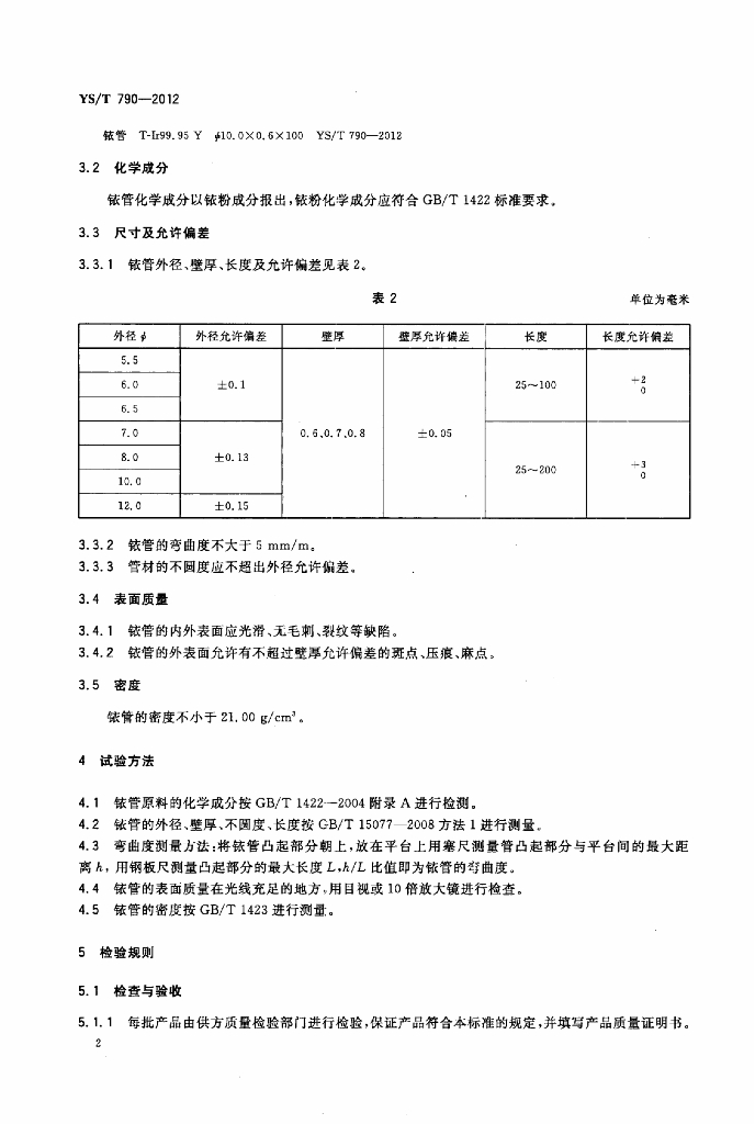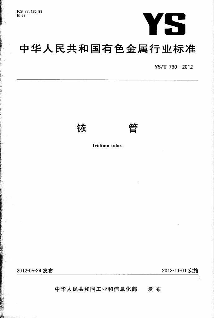 YS/T 790-2012 铱管