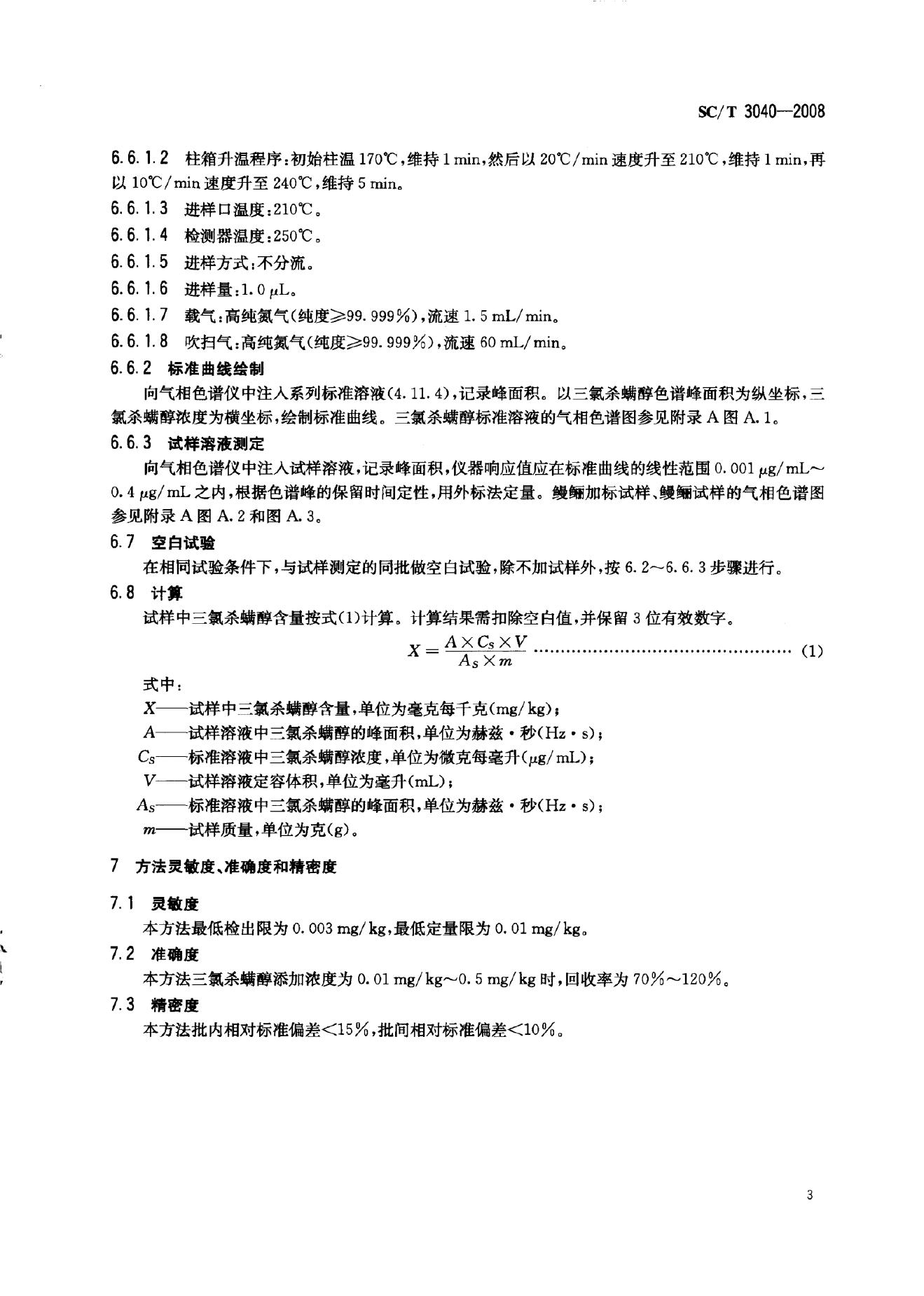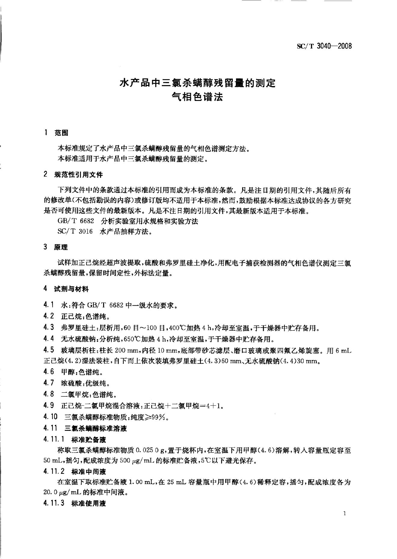 SC/T 3040-2008 水产品中三氯杀螨醇残留量的测定 气相色谱法