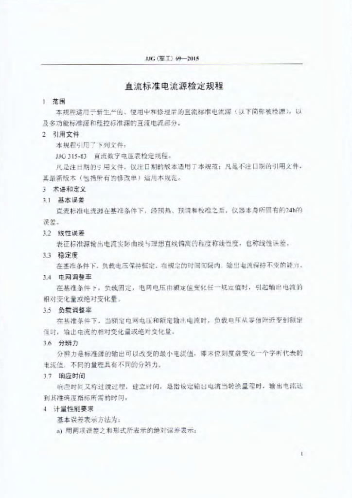 JJG(军工)69-2015 直流标准电流源检定规程