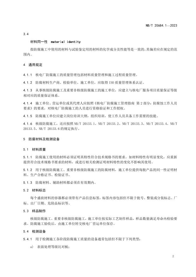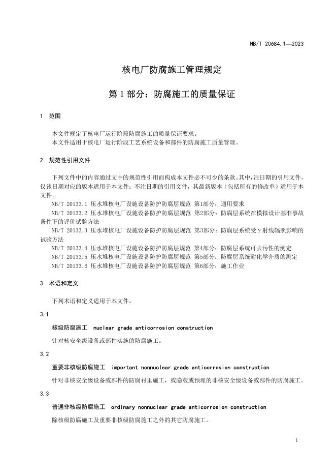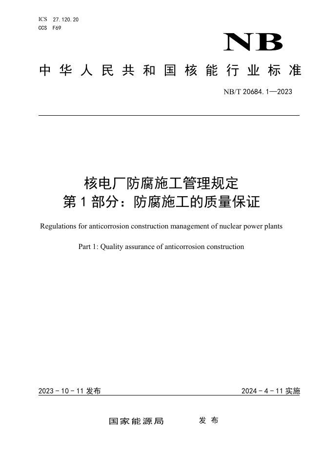 NB/T 20684.1-2023 核电厂防腐施工管理规定 第1部分:防腐施工的质量保证