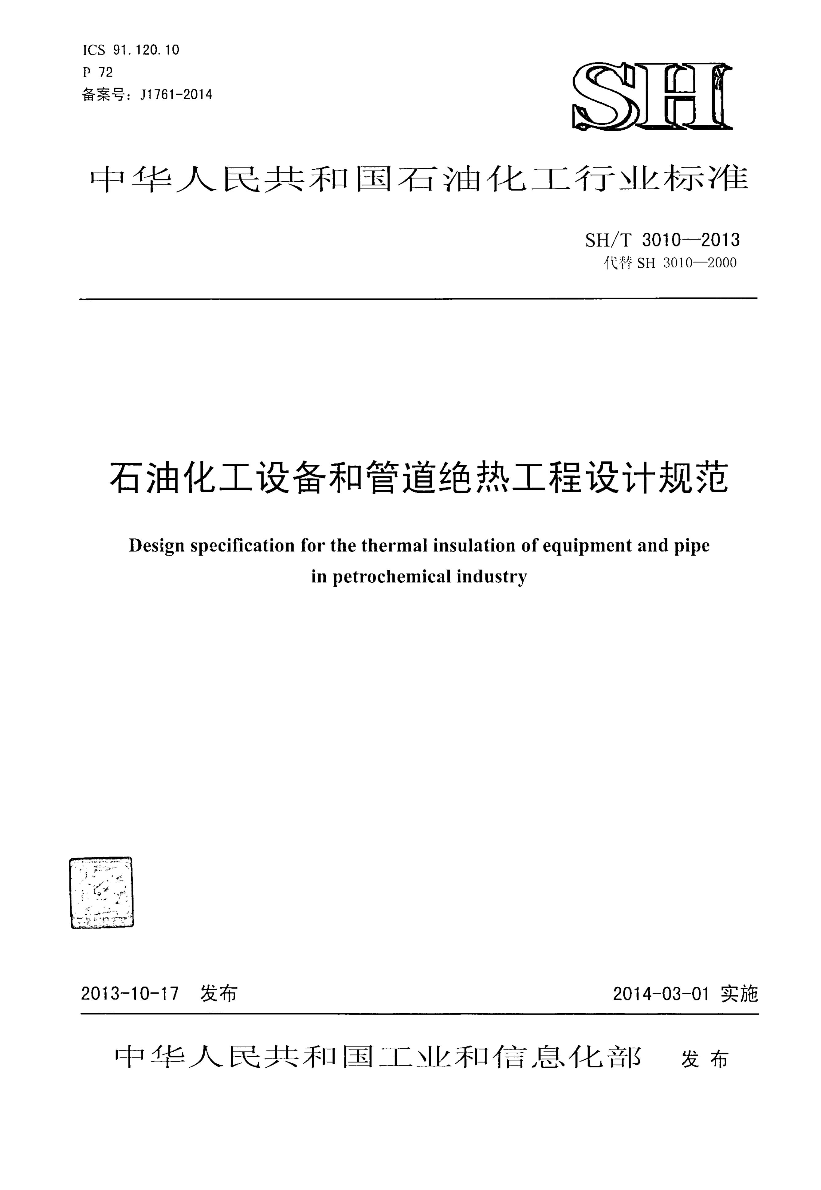 SH/T 3010-2013 石油化工设备和管道绝热工程设计规范(附条文说明)