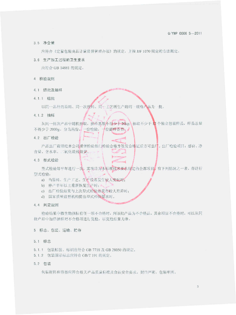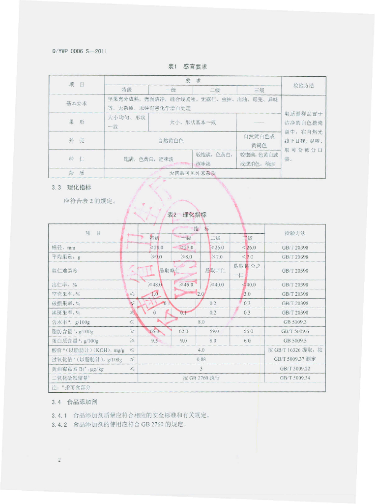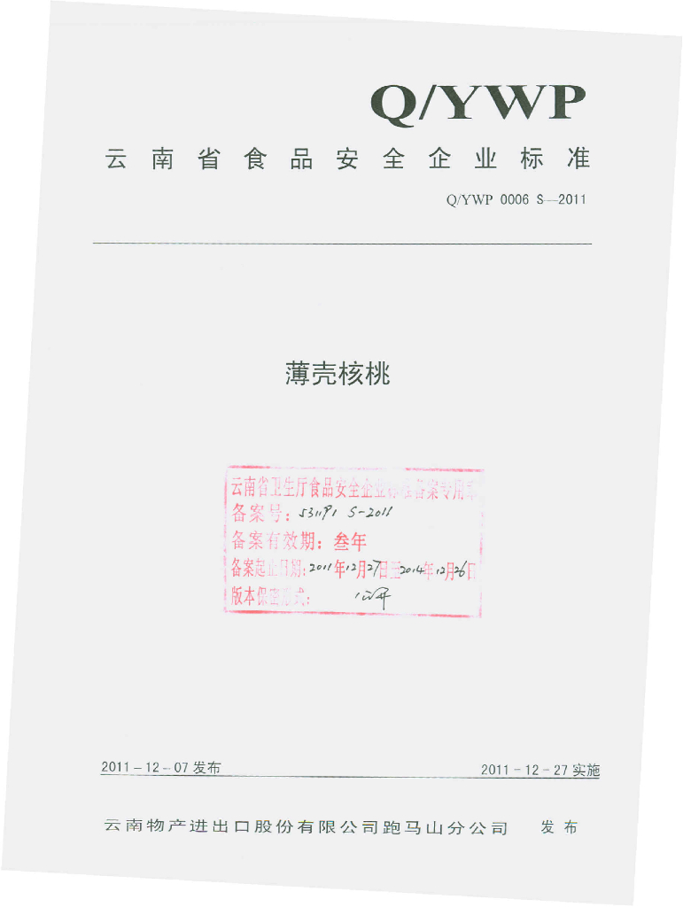 Q/YWP 0006S-2011 薄壳核桃