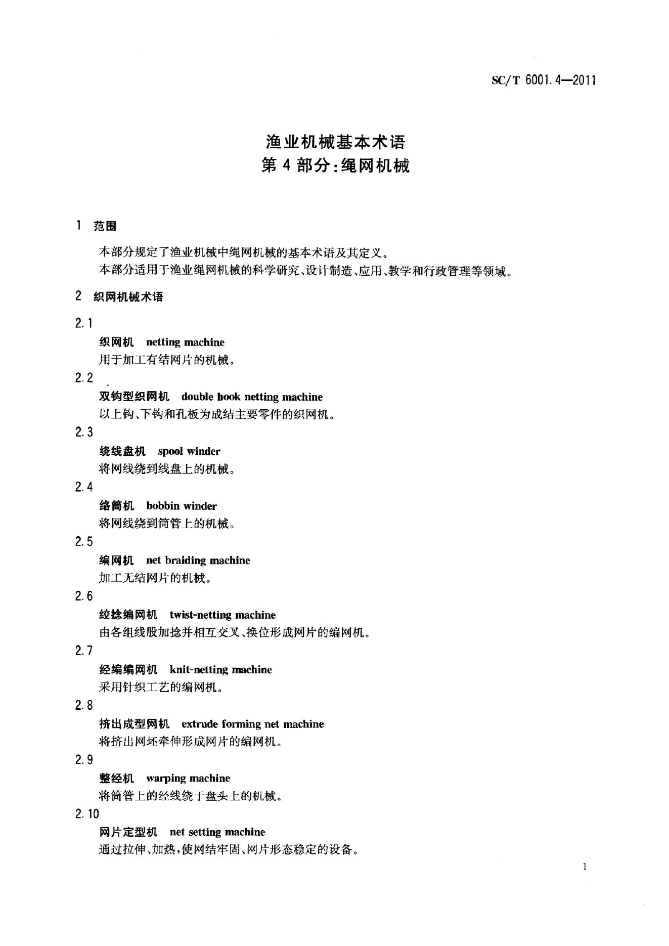 SC/T 6001.4-2011 渔业机械基本术语 第4部分:绳网机械