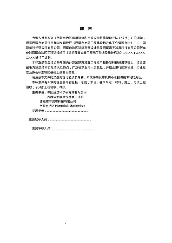 DB XX-XXXX 建筑隔震减震工程施工验收及维护技术导则(征求意见稿)