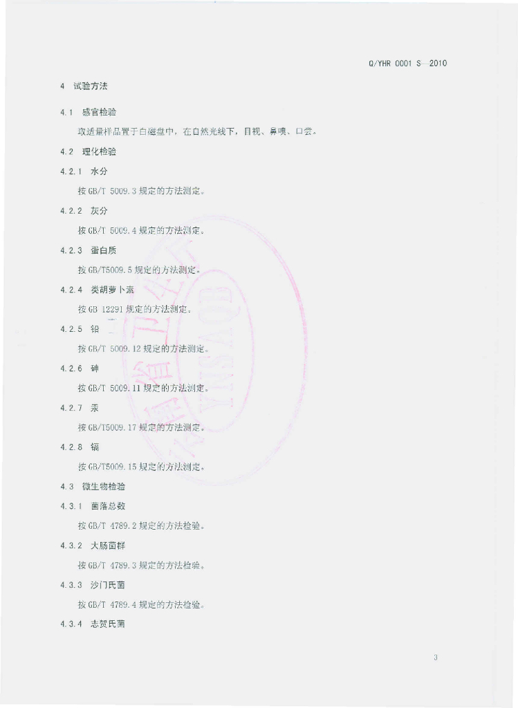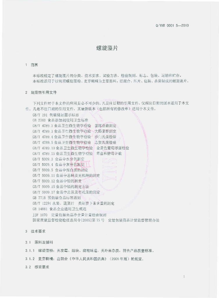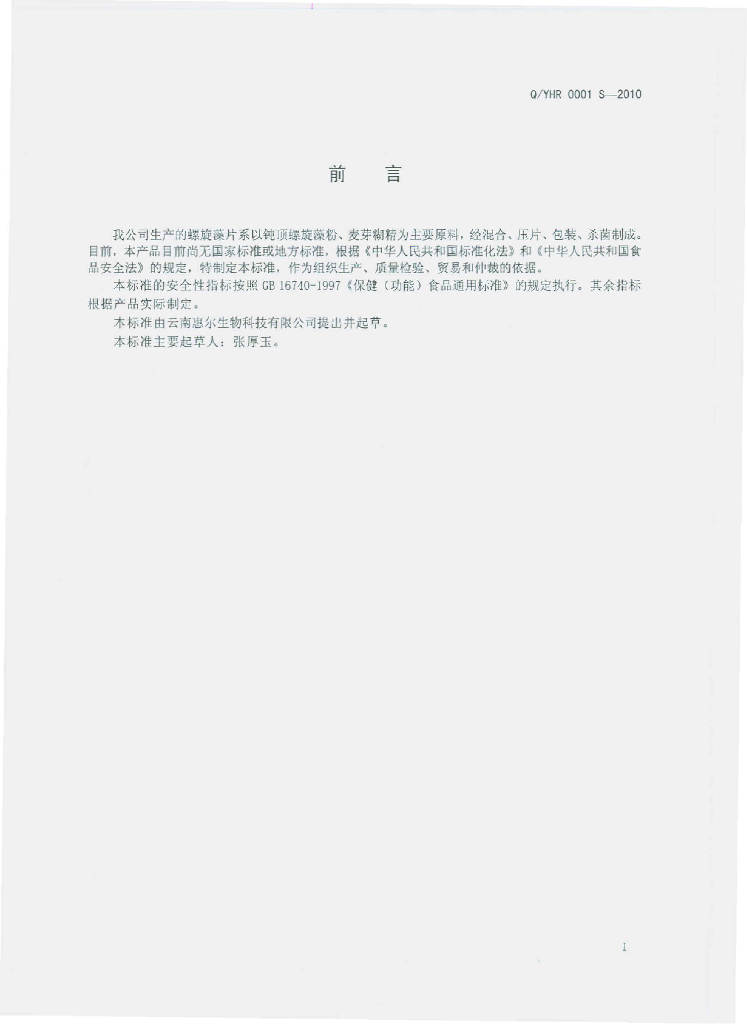 Q/YHR 0001S-2010 螺旋藻片