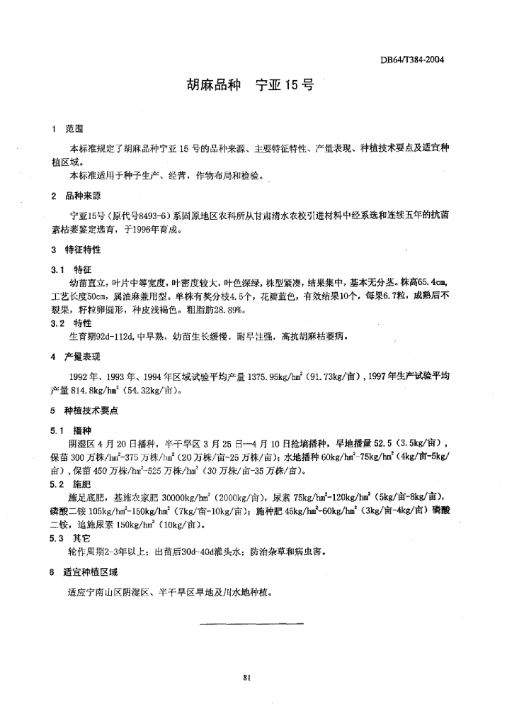 DB64/T 384-2004 胡麻品种 宁亚15号
