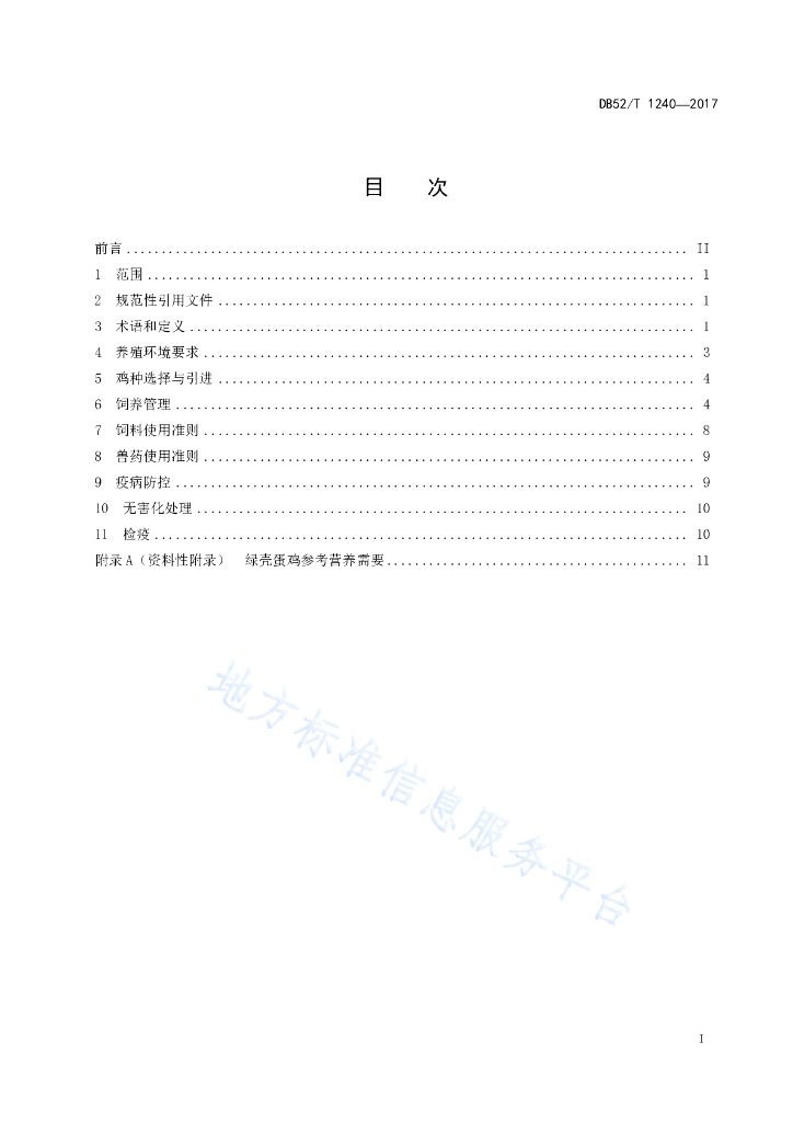 DB52/T 1240-2017 绿壳蛋鸡生态养殖技术规程