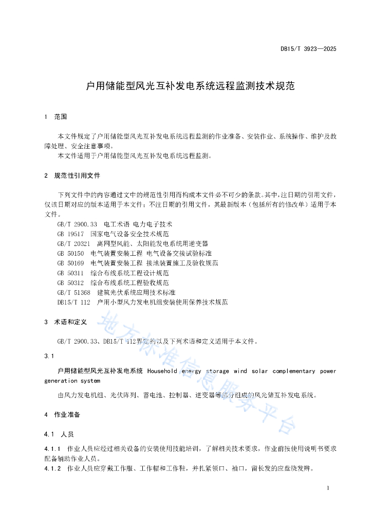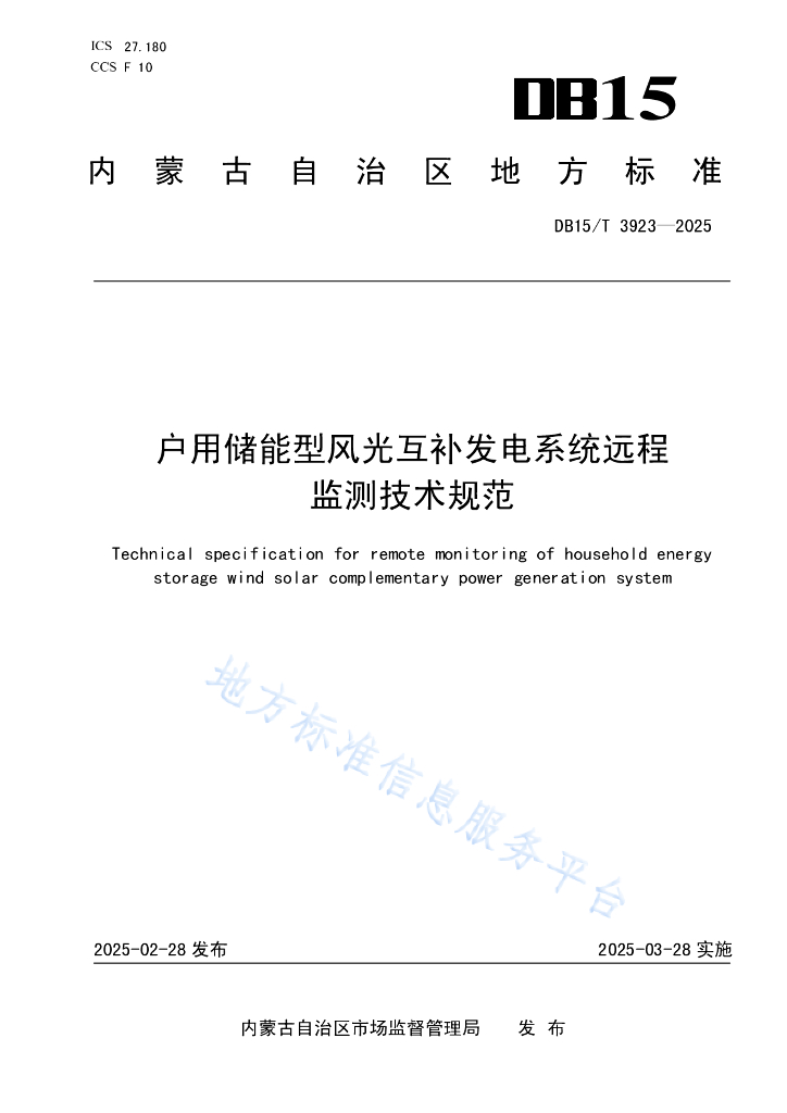DB15/T 3923-2025 户用储能型风光互补发电系统远程监测技术规范